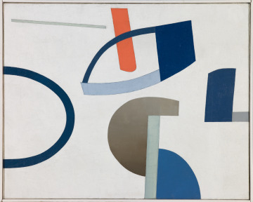 Semicircles, parabolas, and gently curved quadrilaterals adjoin and overlap against a white ground, as if the forms were floating through space. Jean Hélion was a leading figure in promoting abstraction in 1930s Paris and a founder-member of Art Concret, the first French avant-garde group devoted to pure abstraction. Hélion, who began his career as an architectural draftsman, was a great admirer of artist Piet Mondrian but departed from the Dutch master by exploring the complexities of curved forms.