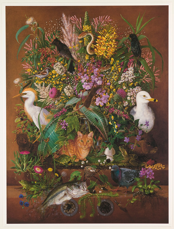 inkjet printColonization of the New World brought a wealth of species to the Americas from around the globe. The seventy-four species in Ascendant are all non-native, but they are also thriving as their populations continue to grow—often at the expense of indigenous flora and fauna. The Indian mongoose, for example, was originally imported to the Hawaiian Islands in the 1880s to control sky-rocketing numbers of another invasive species: rats. Instead, the mongoose has had tragic consequences for rare local bird colonies.