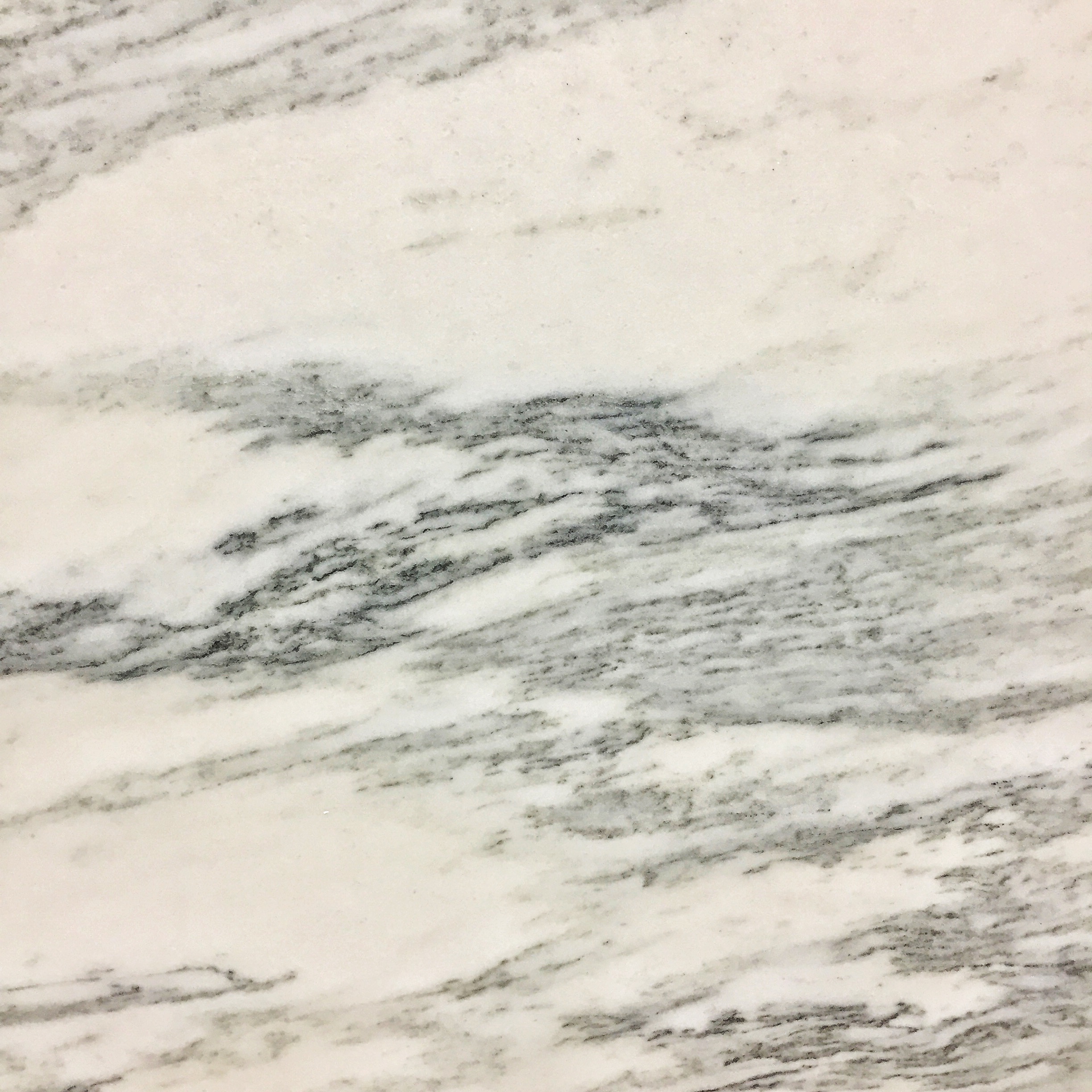 The main mineral in marble is calcite, which is colorless and transparent. But many tiny fluid inclusions and fractures may scatter light making marble white, just as milk is made white by the scattering of light by numerous tiny fat globules. It is somewhat unusual to have a pure calcite marble because the original rock, limestone, which forms on the ocean floor, needs to be free of any mud, sand, and other debris that would later add color. That’s why relatively pure white marble is highly prized.