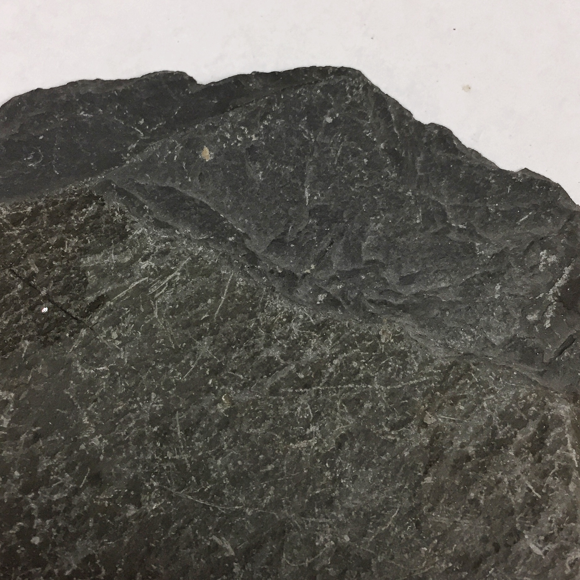 the random clay particles in the mudstone into aligned, flattened flakes of tiny mica which give slate its planar metamorphic fabric. This allows slate to be split into very smooth, thin sheets, ideal for a chalkboard, roofing material, or as a surface for painting. The dark gray to black color of most slate is due to carbon-rich material derived from organic matter in the original mudstone. Greenish slates get their color from the mineral chlorite.