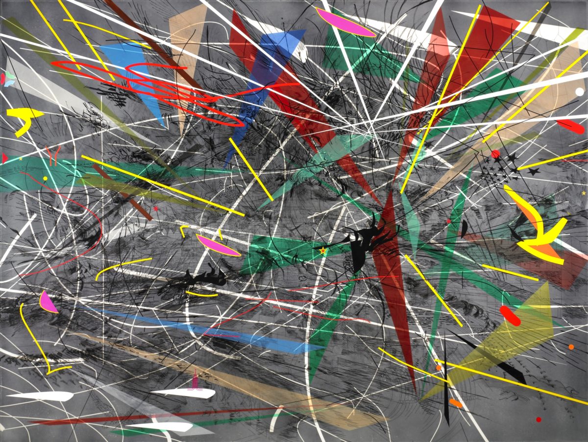 Julie Mehretu, American (born Ethiopia), born 1970; Grey Space (distractor), 2006; acrylic and ink on canvas; 72 x 96 inches; Saint Louis Art Museum, Gift of the Honorable and Mrs. Thomas F. Eagleton by exchange, Siteman Contemporary Art Fund, and funds given by Emily Rauh Pulitzer 1:2010; © Julie Mehretu