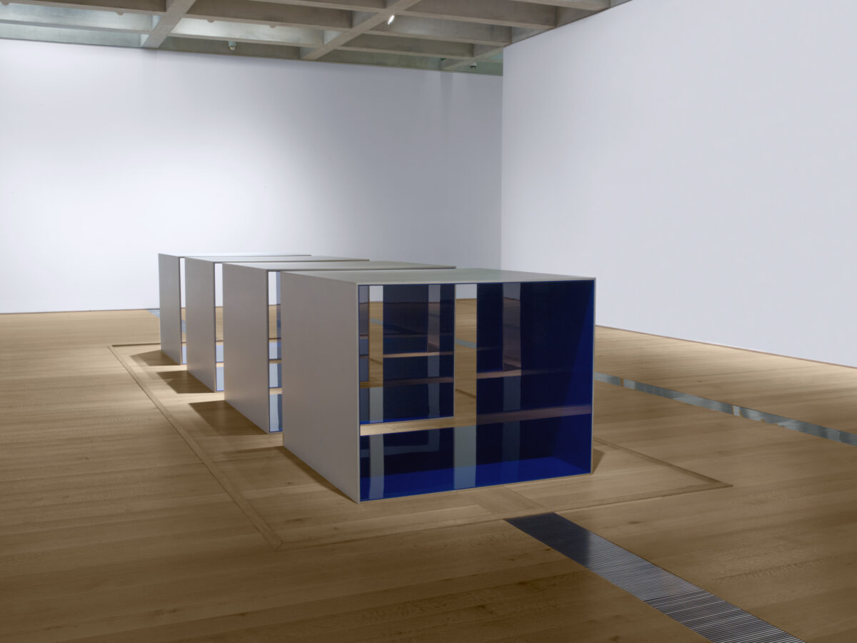 Donald Judd, American, 1928–1994; Untitled, 1969; anodized aluminum and Plexiglas; each unit: 47 1/2 x 59 7/8 x 59 7/8 inches; Saint Louis Art Museum, Funds given by the Shoenberg Foundation, Inc. 1:1970a-d; Donald Judd Art © 2025 Judd Foundation / Artists Rights Society (ARS), New York