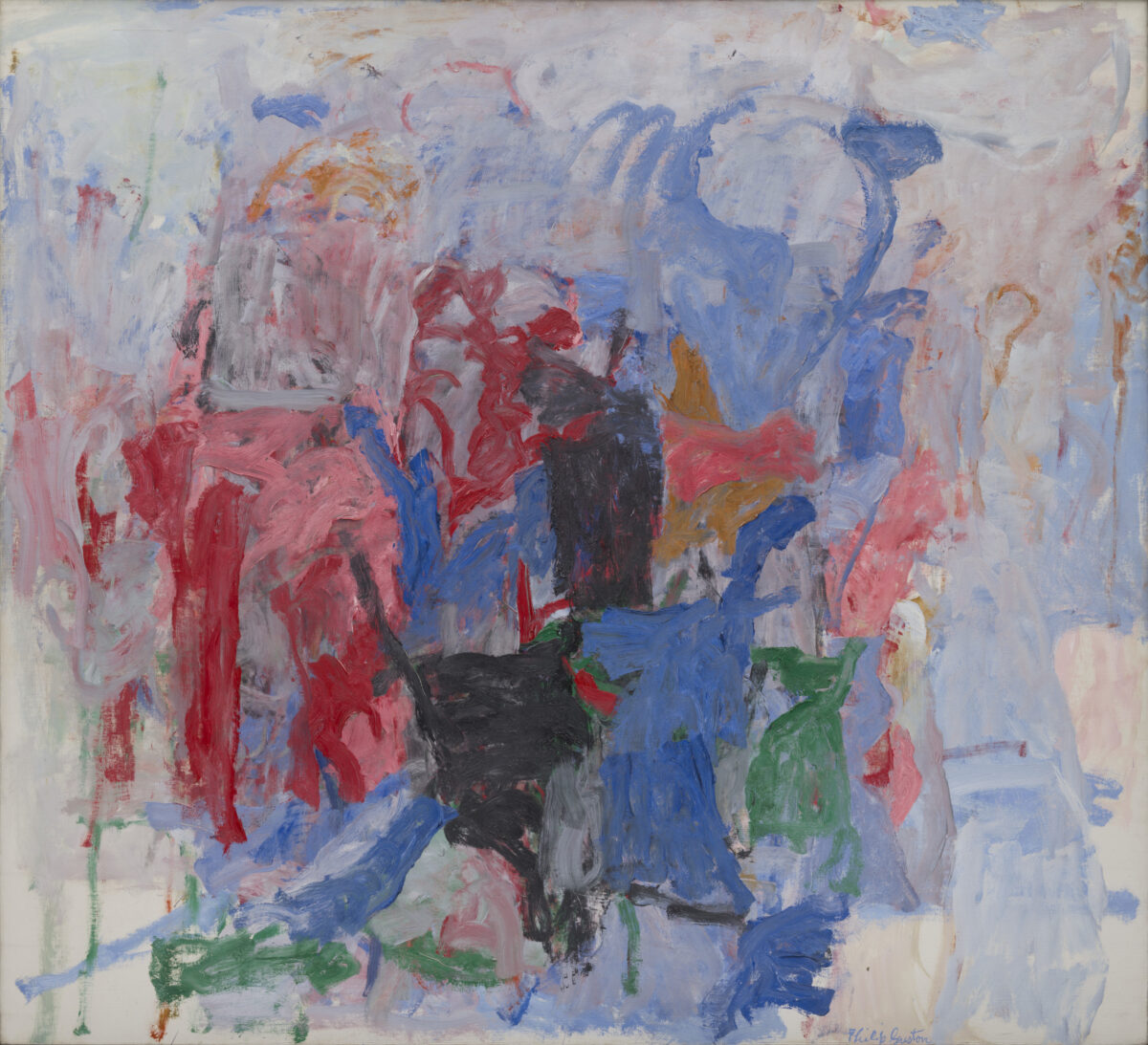 The installation is divided into five themes, beginning with Abstract Expressionism. By the end of the 1950s, Abstract Expressionism was the defining style of a distinctly American avant-garde, celebrated for individuality, freedom of expression, and ambitious scale. Energetic brushstrokes and paint splatters, like that of Franz Kline or Joan Mitchell, and repeated expanses of color, which became a popular style by Mark Rothko, formed the two principal strands of the movement.