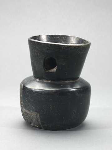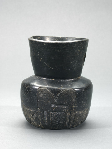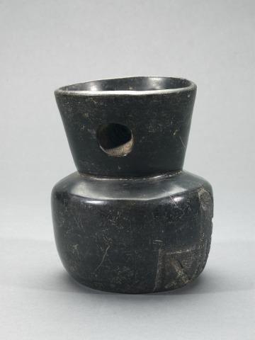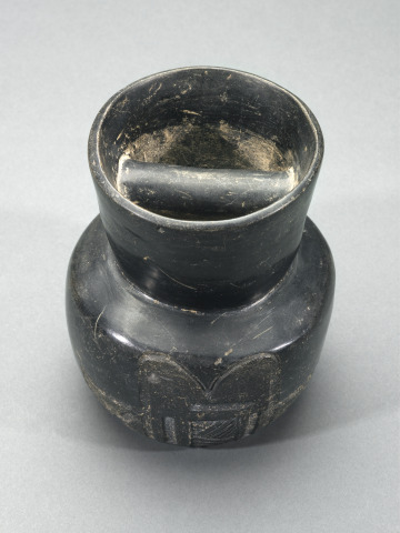 [1] An invoice dated February 10, 1970 from Everett Rassiga Inc. to Morton D. May records May's purchase of the Pepper Collection from Jeanette Pepper, widow of George Pepper. Listed as "Polished Black Bowl with incised carved design on 1 side outside & handle inside..." on an inventory titled "Pepper Collection...Page 2" [invoice and notebook in May Archives, Saint Louis Art Museum]. Although it is not known exactly when George Pepper acquired this object, he began actively collecting Ancient American art while living in Mexico City, his residence from 1951 until his death in 1969 ["Pre-Classic Ceramic Traditions in Central Mexico." Saint Louis Art Museum, 1985, p. 1; "Cold War Exiles in Mexico." Rebecca M. Schrieber, University of Minnesota Press, 2008, p. 9, 105; "A Gathering of Fugitives." Diana Anhalt, Archer Books, 2001, p. 202, 228].