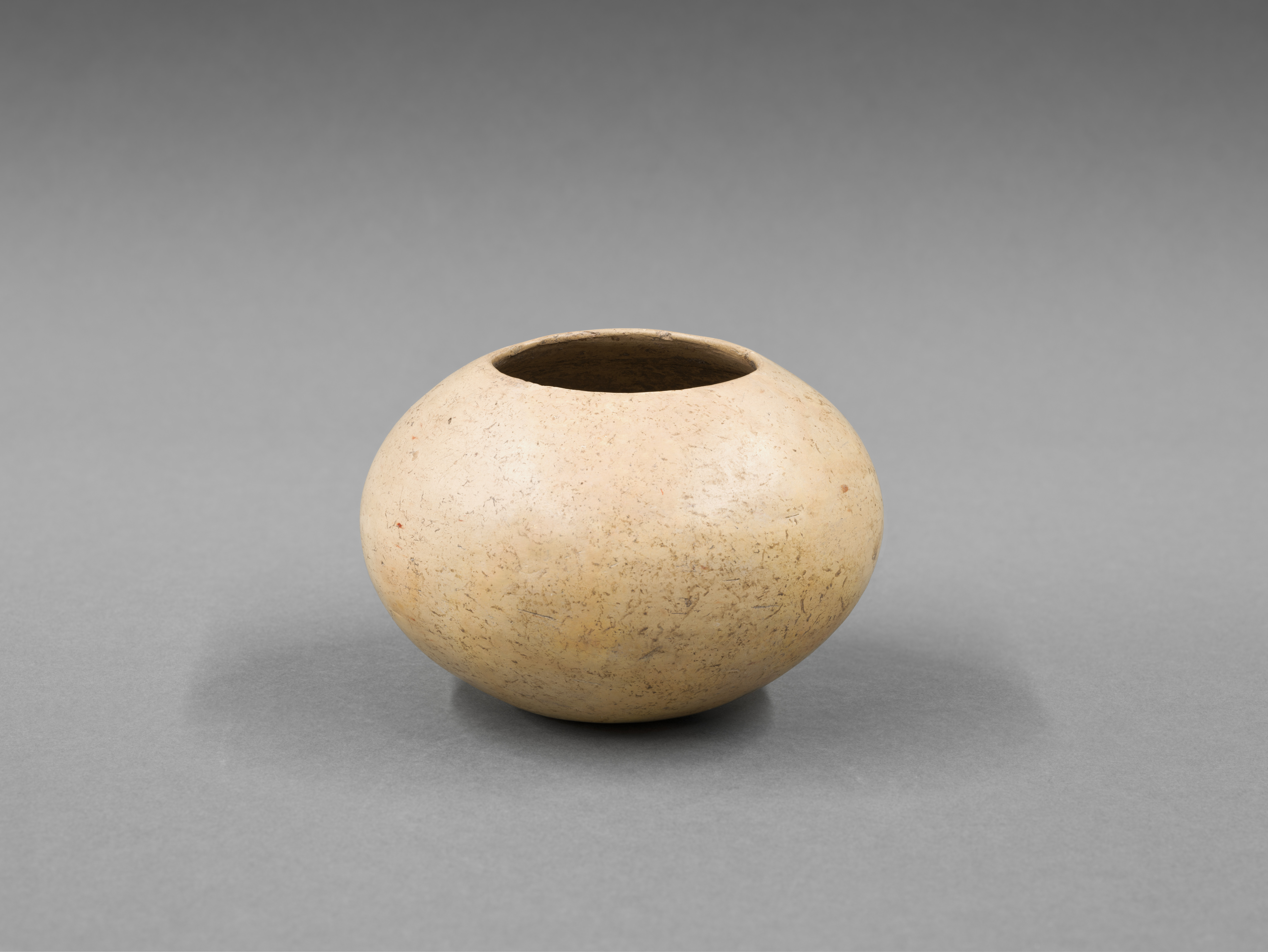 The elegant form and highly burnished surface of this vessel imitates the shape of an oval gourd squash plant known as tecomate. For the ancient residents and farmers of the Valley of Mexico, squash served multiple purposes. Its rich proteins, when complemented with maize and beans, formed a complete nutritional diet. Mesoamerican farmers often grew this triad of plants together; beans replaced the nitrogen taken up by maize and squash. Gourds could also be used as containers for food and water, making their ceramic counterparts a more permanent representation of the agricultural products that supported the complex societies of ancient Mesoamerica.