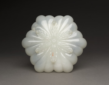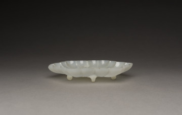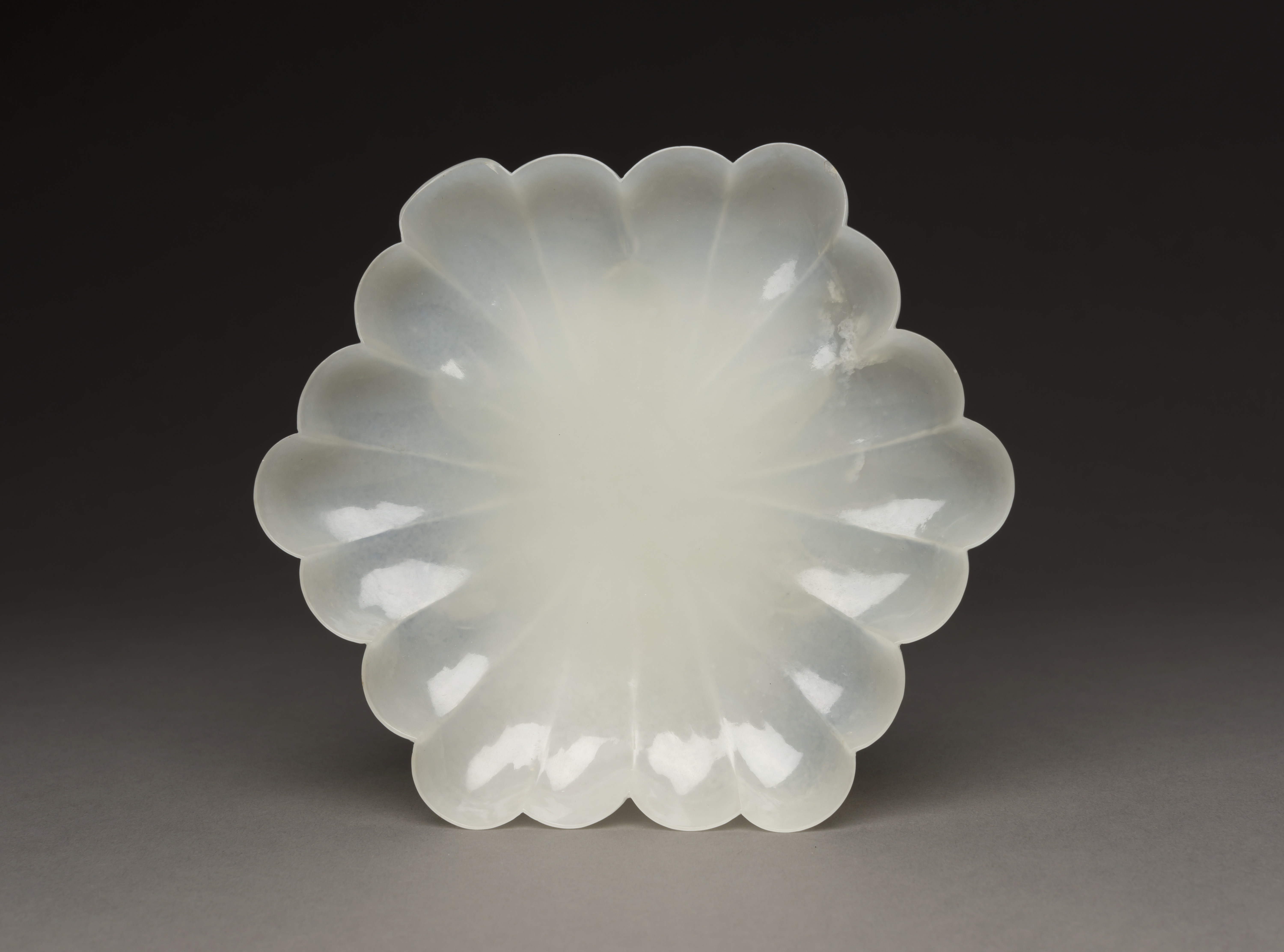 Mughal-style Hexagonal Footed Dish with Fluted Sides and Foliated Rim