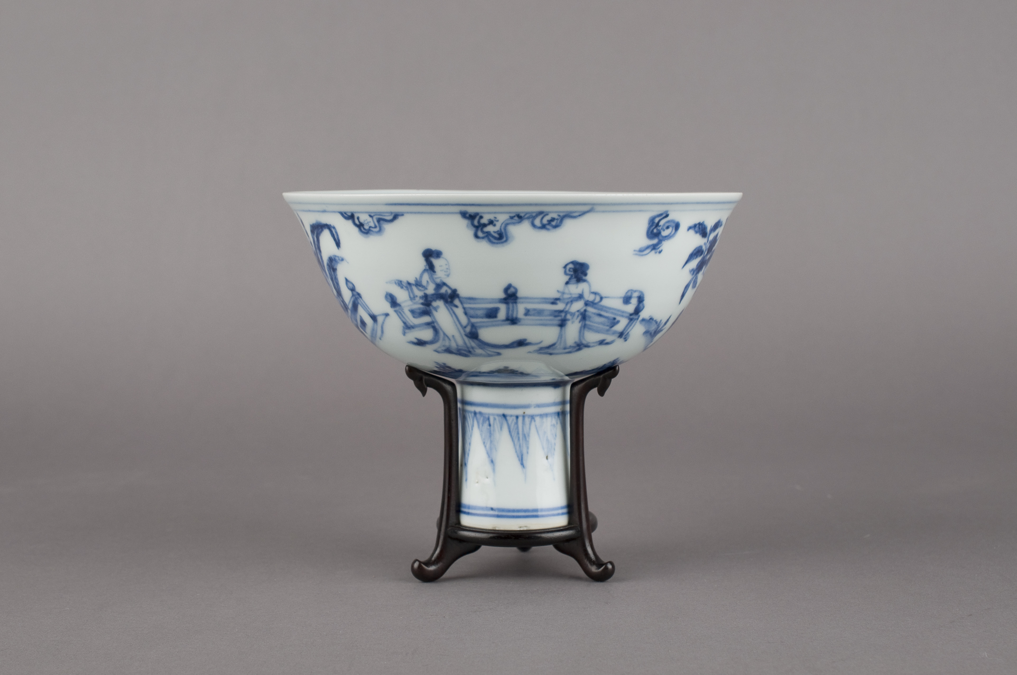 Stem Cup with Design of Four Ladies in Garden Landscapes