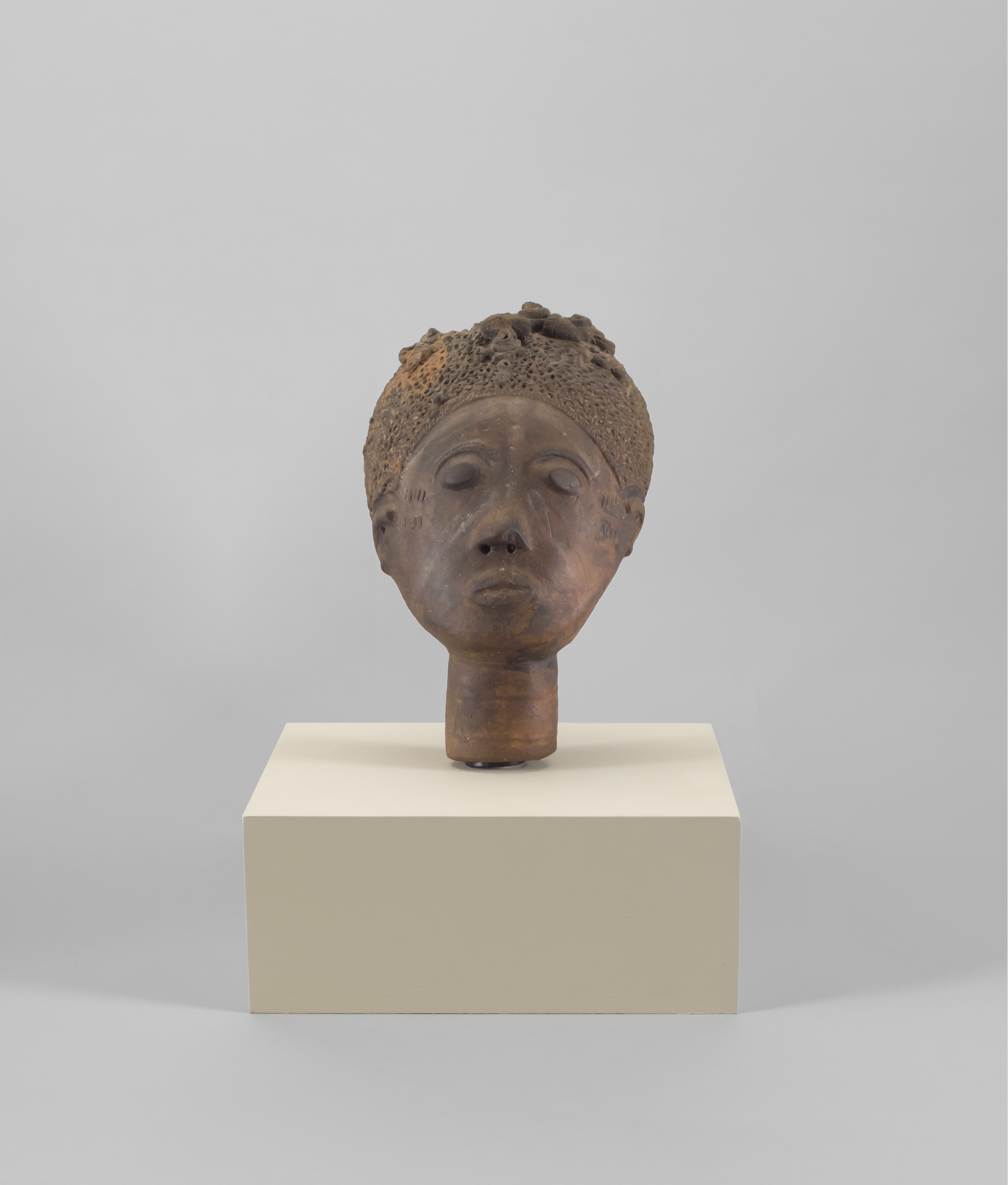 Heads such as these would be installed, following funeral rites, in the "asensie," or “place of the pots,” outside of the village, where it could be periodically visited and honored. European visitors observed this type of terracotta sculpture among the Akan in the 17th century, and this sculptural tradition continued until at least the early 20th century.