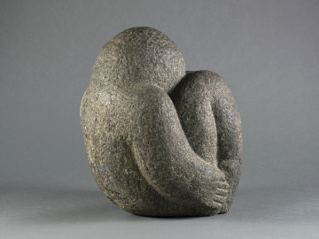 This sculpture is both rough and elegant while radically simple and powerfully emotional. It evokes both the natural form of the stone from which it is carved and the living form it represents.