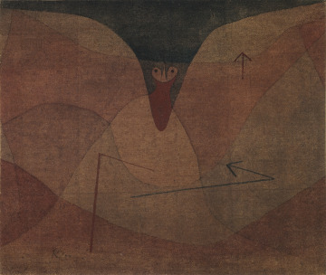 Veils of delicate color show a bird in flight with a tiny head, deep red neck, and wide outstretched wings. Paul Klee associated birds with freedom from earthly concerns and even compared them to angels. He achieved this work’s ethereal look by soaking the coarse back of a commercially prepared canvas with translucent washes of watercolor paint. Inspired by the drawings of children, Klee explored the unconscious as a means to access primal artistic impulses.