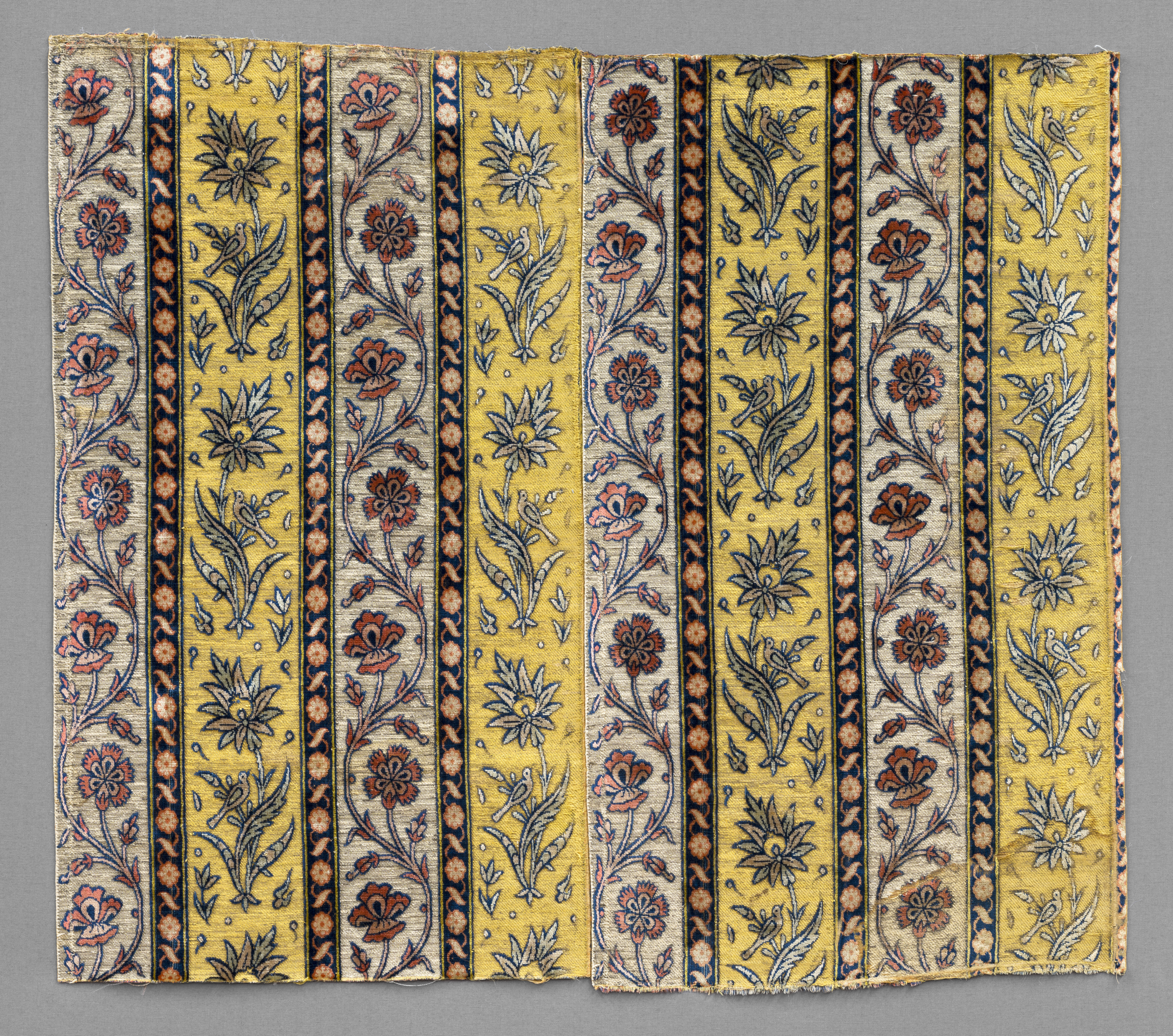 Textile Pieced with Two Panels with Design of Columns of Flowers
