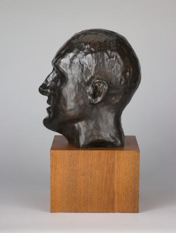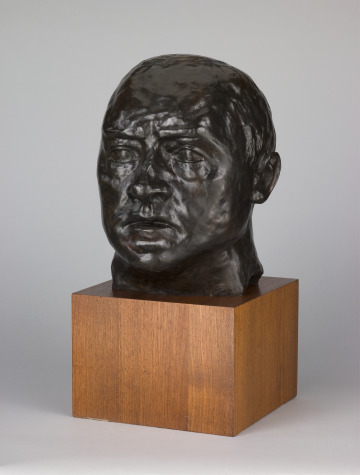 Besides being a prolific painter and printmaker, Max Beckmann also produced a small group of eight sculptures. This brooding self-portrait shows the seemingly world-weary artist with down-turned mouth and sagging eye pouches. The artist’s stern expression nonetheless seems to suggest defiance at a difficult time in his life when his career was increasingly threatened by the rise of the National Socialists.