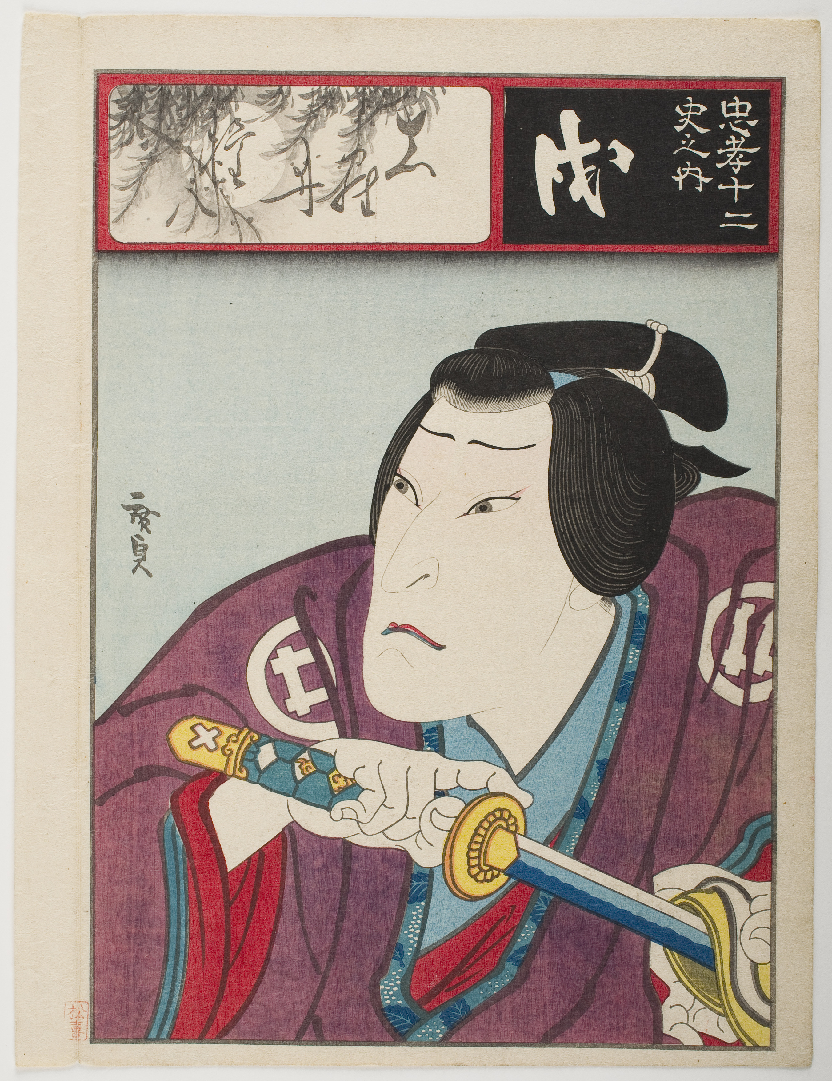 Inu (Dog, Eleventh of the Twelve Earthly Branches of the Sexagenary Cycle): Actor Ichikawa Shikō II as Shirai Gonpachi, from the series “Loyalty and Fidelity for the Twelve Signs of the Zodiac”