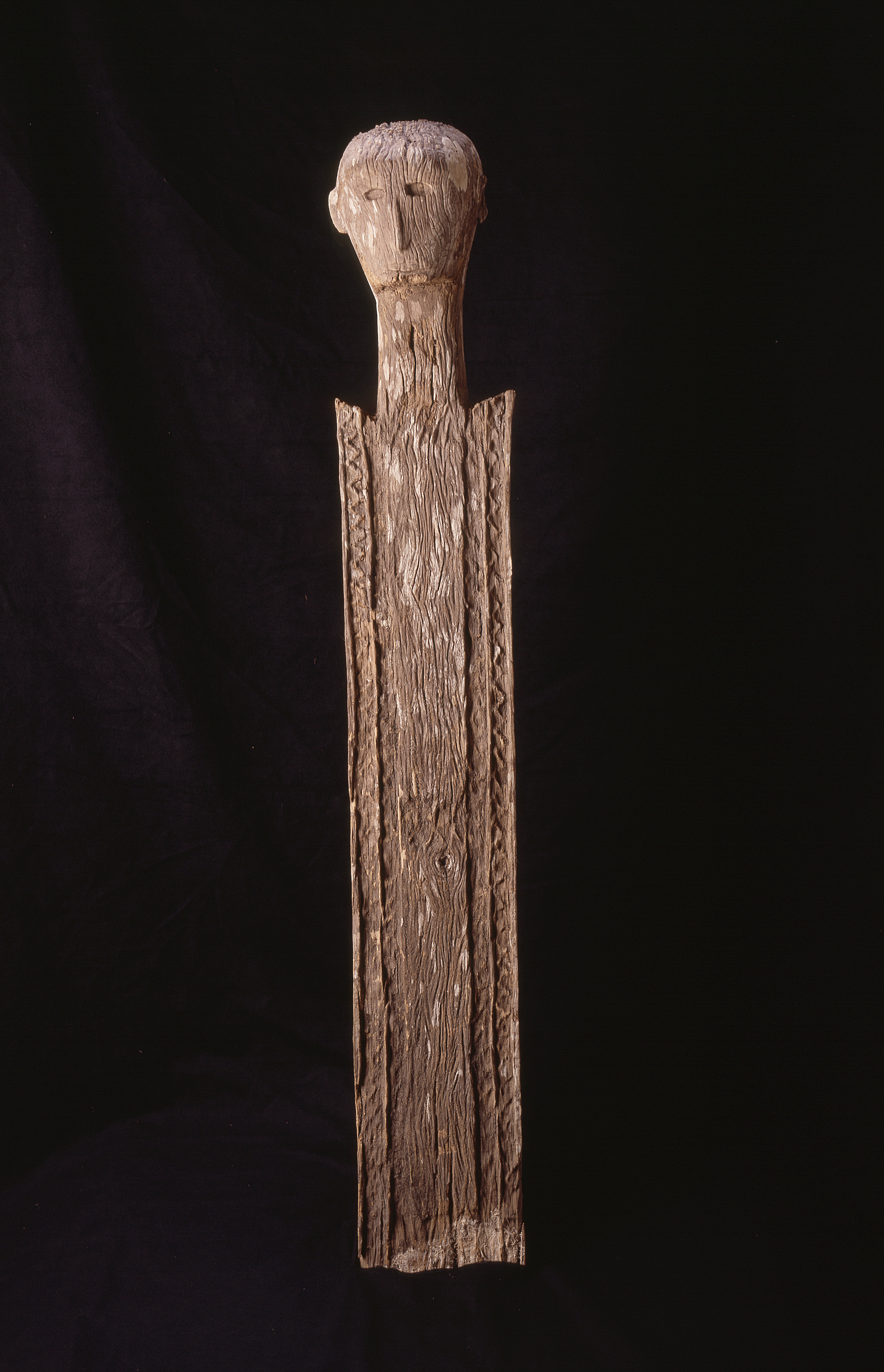 This exceptional kikangu figure is unusual for its rounded head, since most other similar figures have heads that are more plank-like, reflecting the typical kikangu body shape seen here. Originally created to serve as the grave marker of an important Giriama ancestor, this figure stood as a mediator between the ancestral realm and the land of the living.
