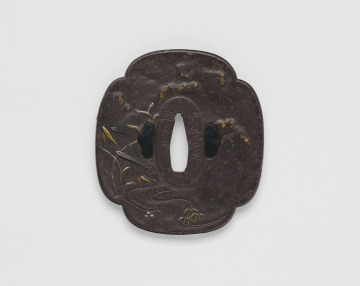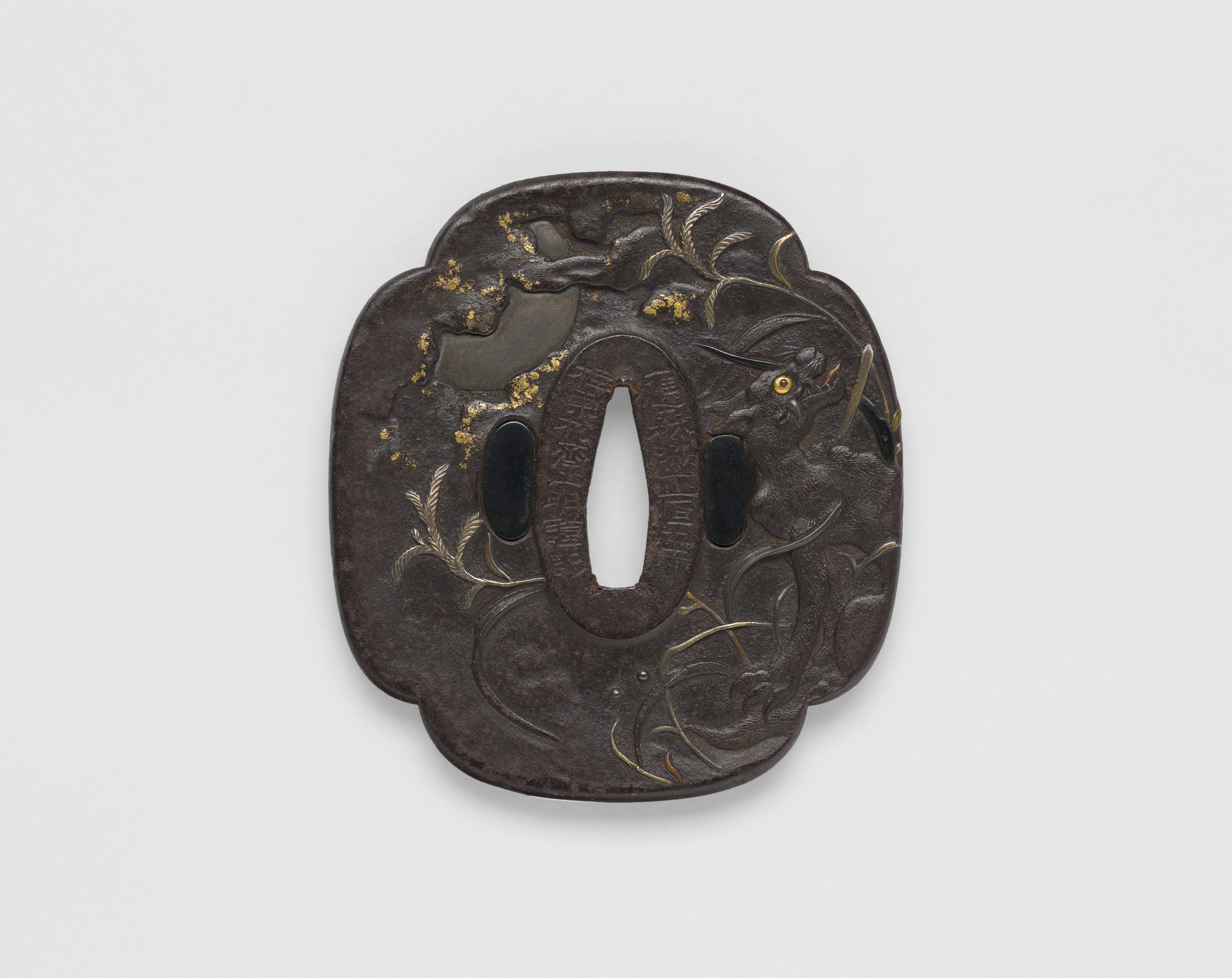 Sword Guard (tsuba) with Design of Wolf amidst Autumn Grasses under a Full Moon