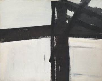 Dark, velvety bands of paint intersect against fields of radiant white. Franz Kline’s cruciform composition creates expressive tension through a set of formal oppositions: black and white, subject and background, horizontal and vertical. While these angular forms may recall the iron girders or wooden beams of an industrial structure, visual reference gives way to overall abstraction. Often inspired by the stark landscapes of his home state, Kline named many of his abstract paintings, including Bethlehem, after Pennsylvania towns and counties.