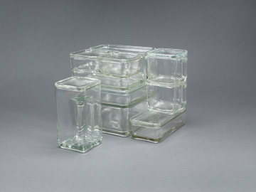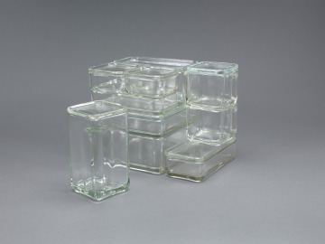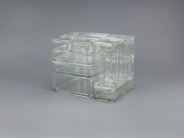 [1] An undated, unsigned note on Norbert A. Drey, Dekorative Kunst letterhead indicates that the Kubus set was acquired from H. Schulze, a former longtime staff member of the Werkstätte Wagenfeld at Stuttgart [SLAM document files].