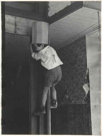 Boy Climbing a Pole