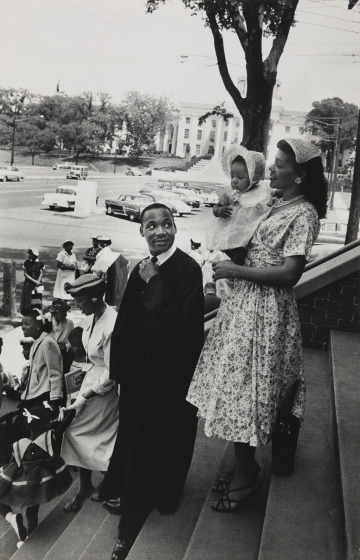 Dr. Martin Luther King, Jr., Coretta Scott King, and daughter Yolanda on the steps of the Dexter Avenue Baptist Church – Montgomery