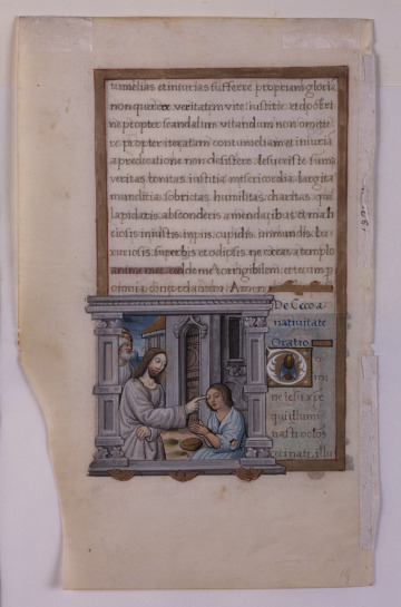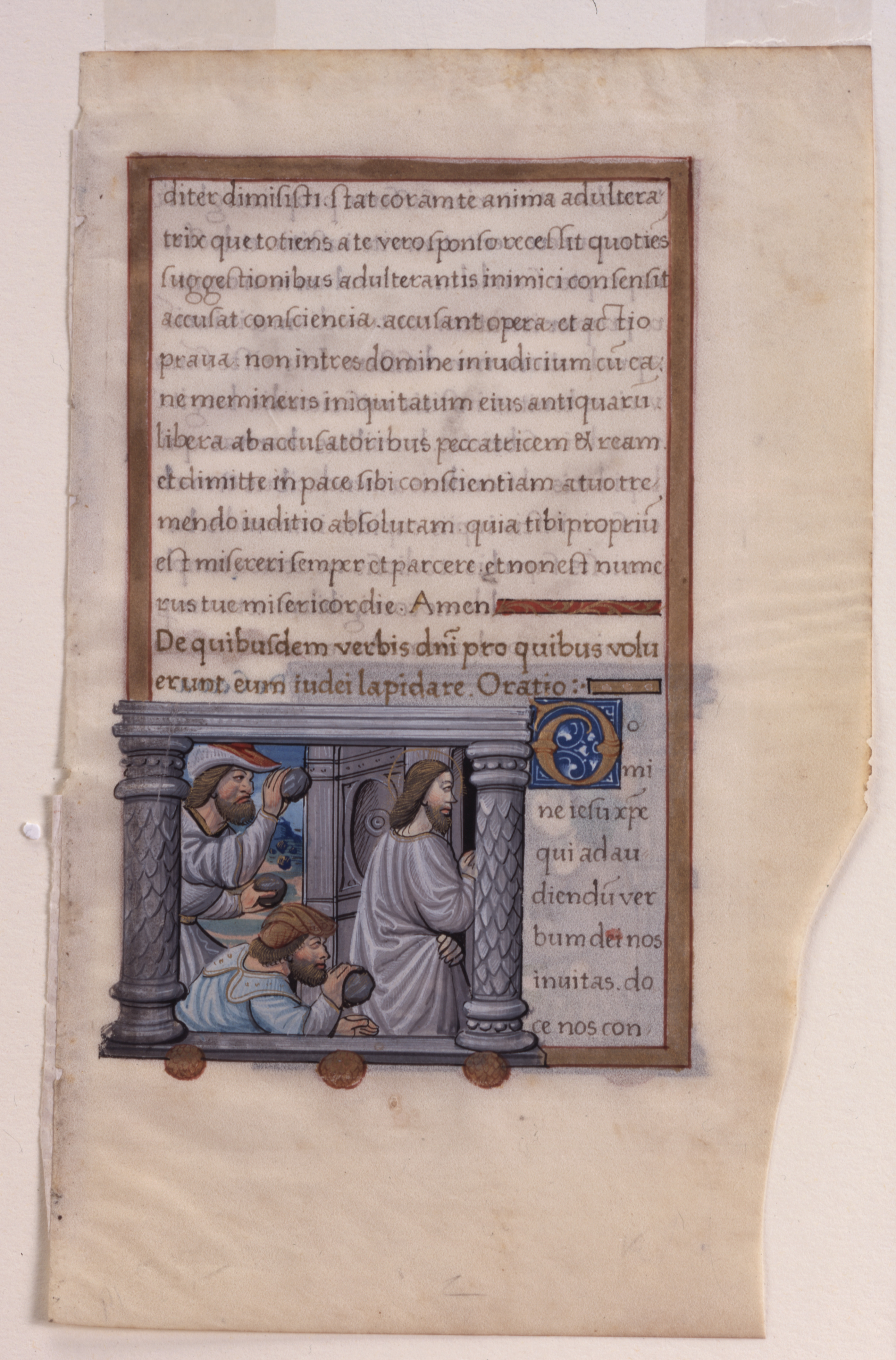 Leaf from Ludolph of Saxony’s Vita Christ. Recto: The Stoning of Christ. Verso: Christ Healing.
