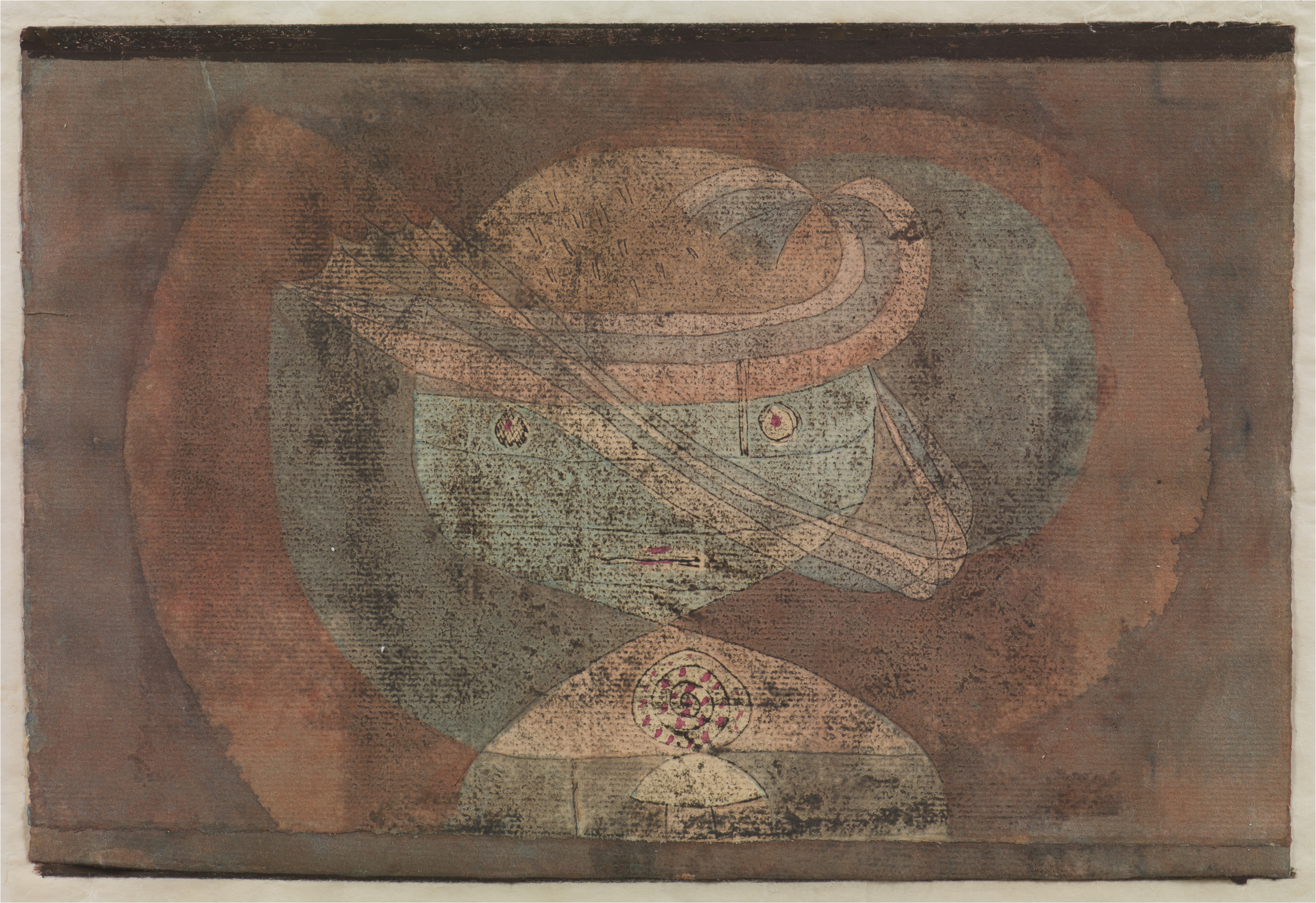 The Swiss artist Paul Klee is known for his complex and highly personal approach to Modern art. Klee was enthusiastic about the role that tribal art, folk painting, and children's art could play in helping artists break from Western artistic conventions and achieve a greater intuitive level. In this humorous work, Klee represents a child's growth in response to the stimuli from his environment. The many ellipses surrounding the toddler's head suggest that he is caught in overwhelming forces of excitement and disorientation. The oversize head evokes the distortions of scale found in children's artworks which Klee admired for their creativity and innocence.