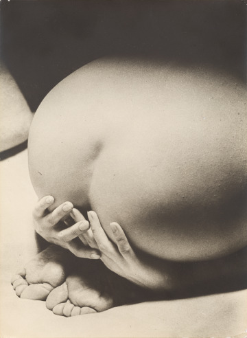 The great themes of the art movement Surrealism intersect in Man Ray's photograph: a strange, unexpected composition; a fascination with sex and female beauty; and playful irreverence. The model is unknown, but she was probably Man Ray's lover, the American photographer Lee Miller. Disembodied and fragmented, her identity is reduced to buttocks, hands, and feet. The fingers are brought up, crossed, blocking an indecent view. It is a false modesty, as the greater part of her nude posterior is still visible.