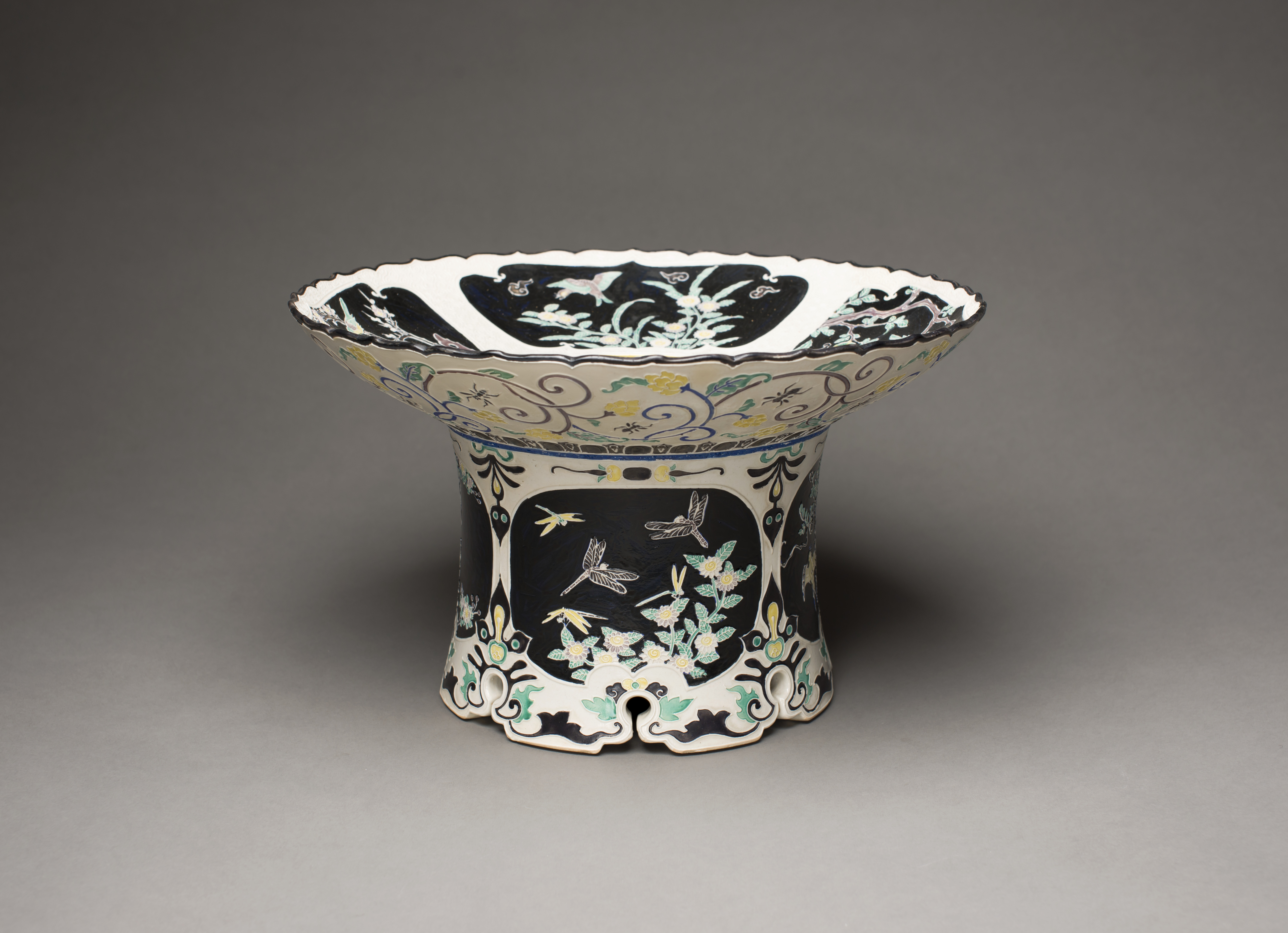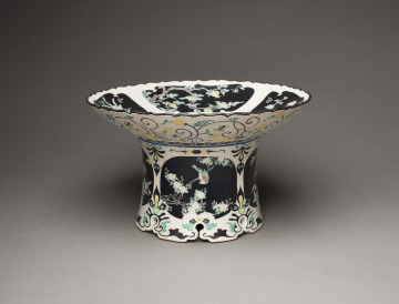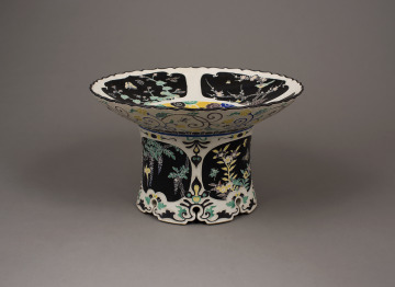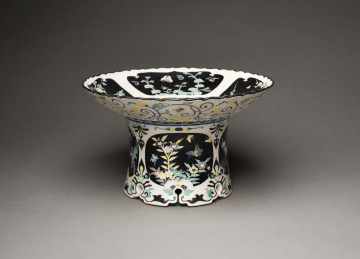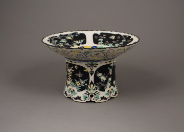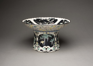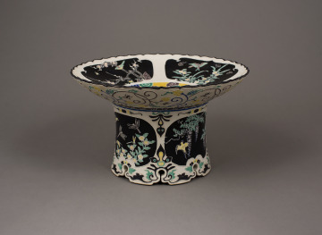 High-Footed Dish with Foliated Rim and Design of Birds and Flowers of the Four Seasons in the “Kōchi” Style