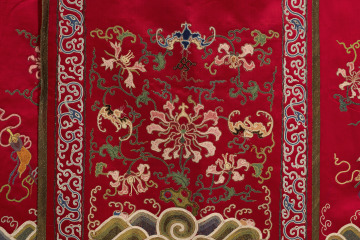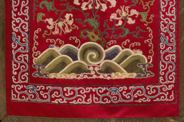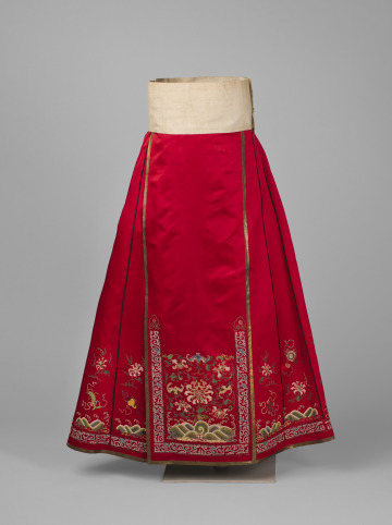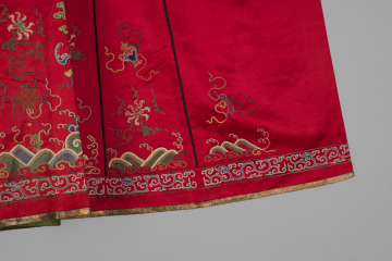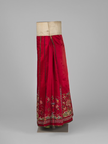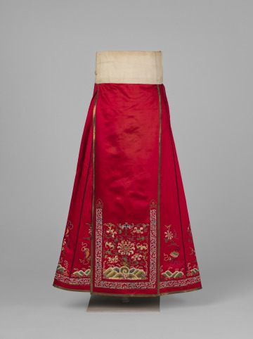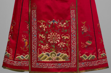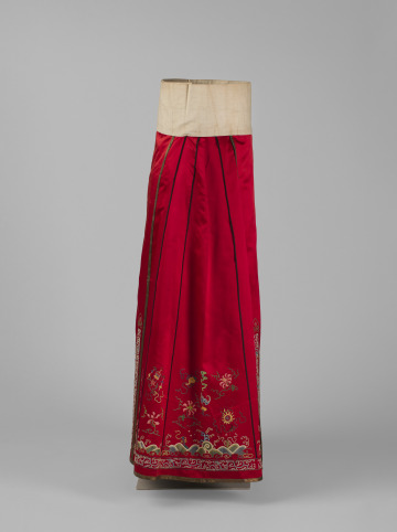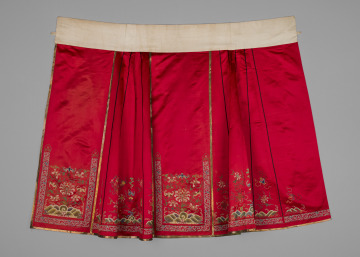 Han Chinese Woman’s Skirt (qun) with Design of Floral Sprays, Bats, Auspicious Emblems, and Waves with Stylized Dragon Borders