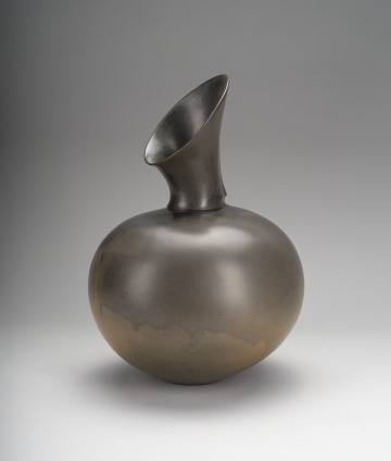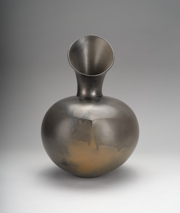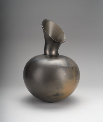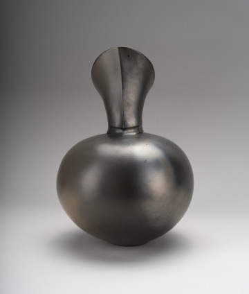 The artist created the glistening black surface of this vessel by firing multiple times and meticulously burnishing, or rubbing, by hand. Dame Magdalene Odundo’s distinctive vessels, constructed with a coiling technique that is thousands of years old, are informed by a range of pottery traditions from around the world. The artist builds upon these long-standing ceramic styles while exploring the relationship between vessels and the female body. Created as individuals, no two Odundo vessels are the same.