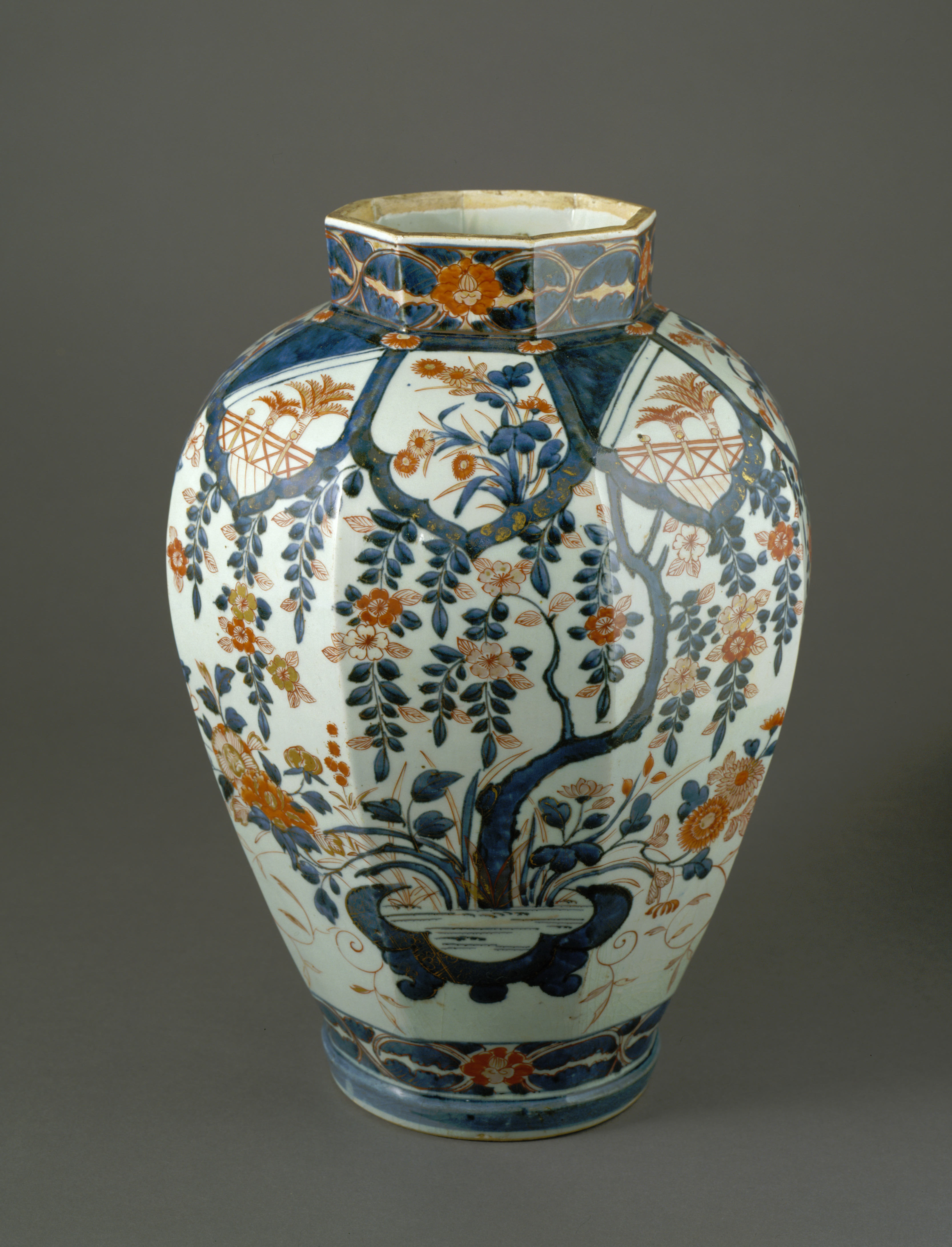 Octagonal Jar with Design of Cherry Trees, Peonies, and Chrysanthemums