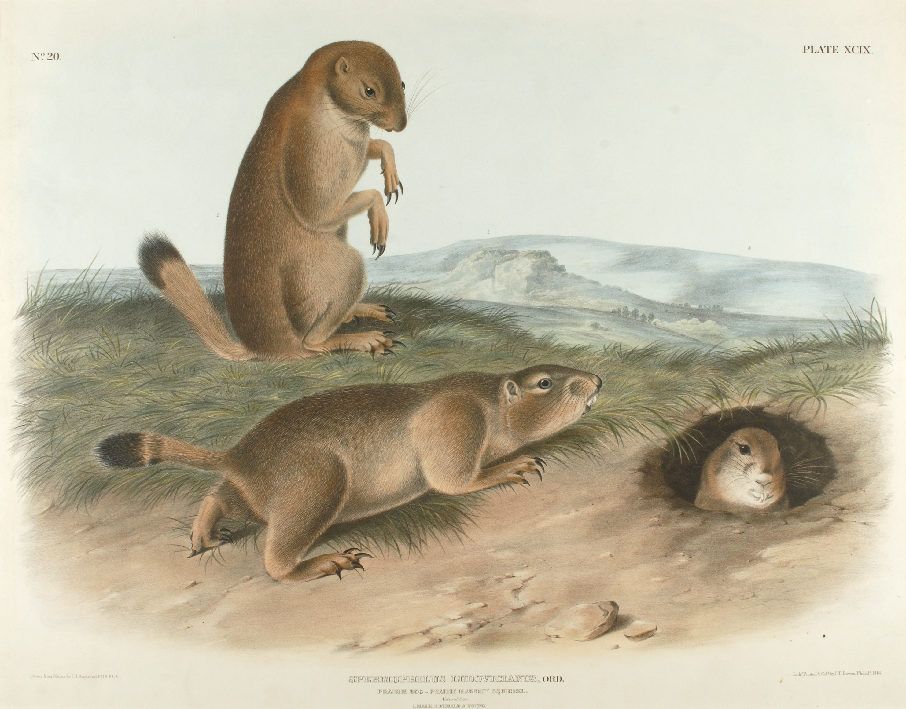 Spermophilus Ludovicianus, Ord./ Prairie Dog – Prairie Marmot Squirrel, Plate XCIX from the series “Viviparous Quadrupeds of North America”