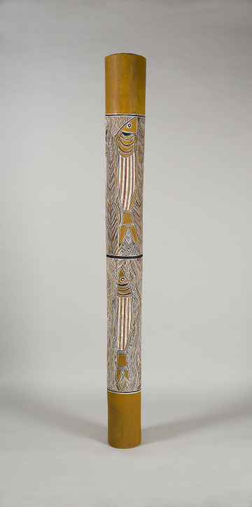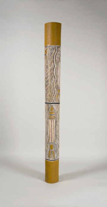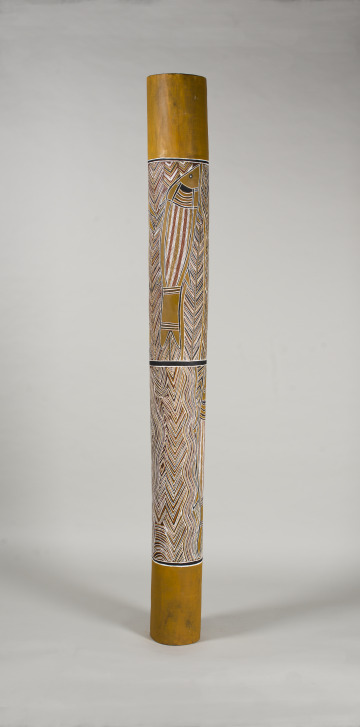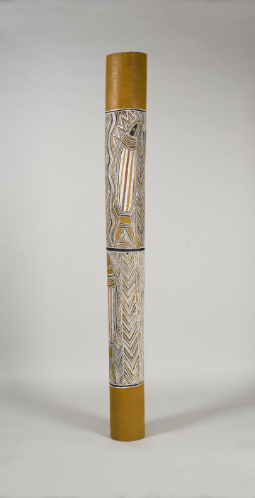 Alluding to historical funerary practices among Aboriginal communities in Arnhem Land, this pole offers a means to contemplate legacies of loss across Australia. Early-20th century federal incursions in Arnhem Land involved colonial violence. Additionally, the prior European settlement of southeastern Australia is strongly associated with massacres, disease, and trauma for Aboriginal communities.