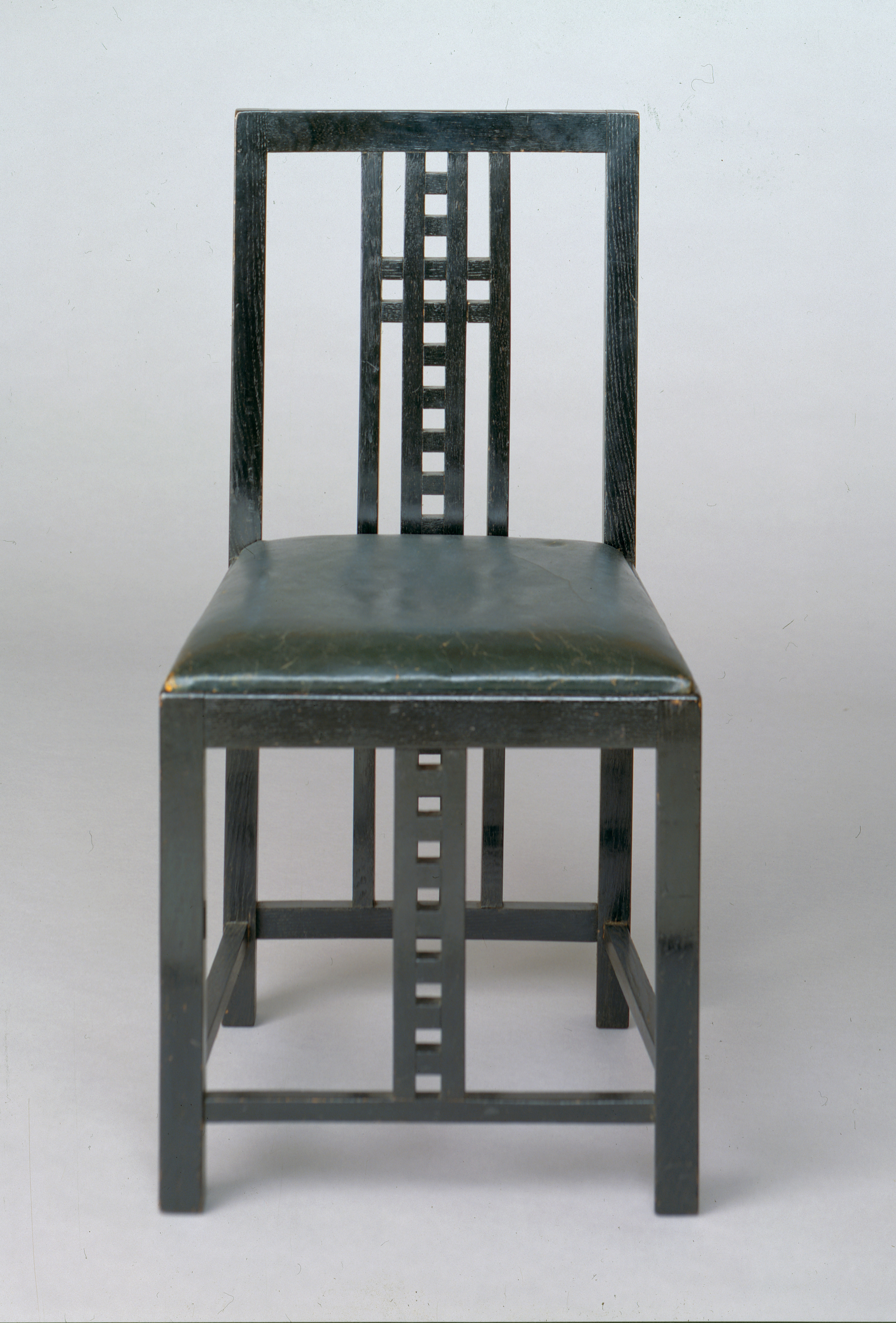 [1] Three chairs of this design are known and attributed to the room designed by Mackintosh in 1917 known as the Dug-Out in the Willow Tea Rooms, Sauchiehall Street, Glasgow. This property became the Kensington Restaurant in the 1920s. [Billcliffe, Roger. "Charles Rennie Mackintosh: the Complete Furniture, Furniture Drawings, and Interior Designs." London: 1979, 235-8.]