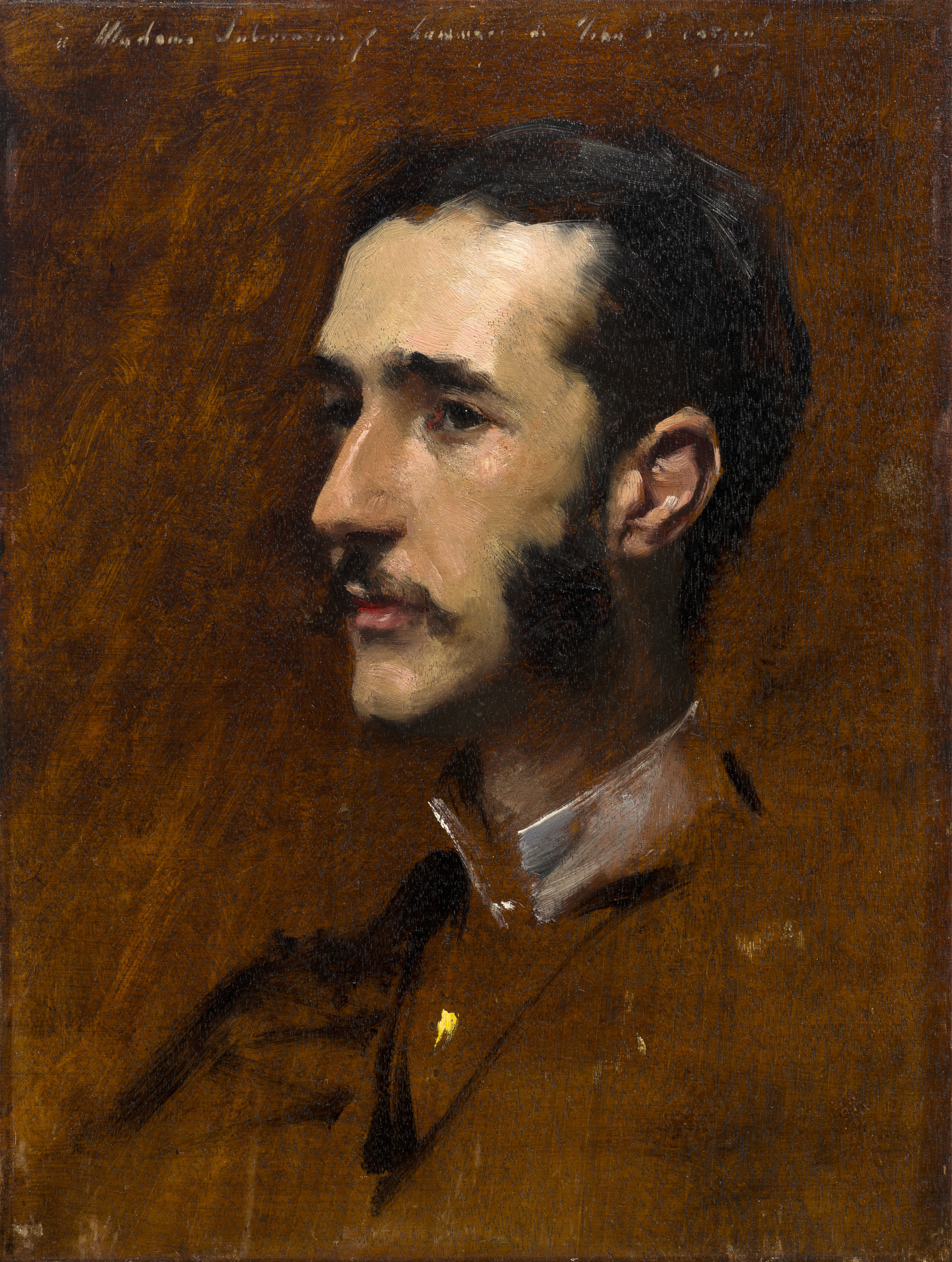 The refined intellect of the sitter is evident in this sensitive portrait. A Chilean diplomat, author, and painter, Ramón Subercaseaux was a member of the artistic set that was Sargent's preferred clientele. Early in Sargent's career, Subercaseaux commissioned a full-length portrait of his wife, which won Sargent one of his first medals at the Paris Salon in 1881. The inscription dedicates the work to Subercaseaux's wife.