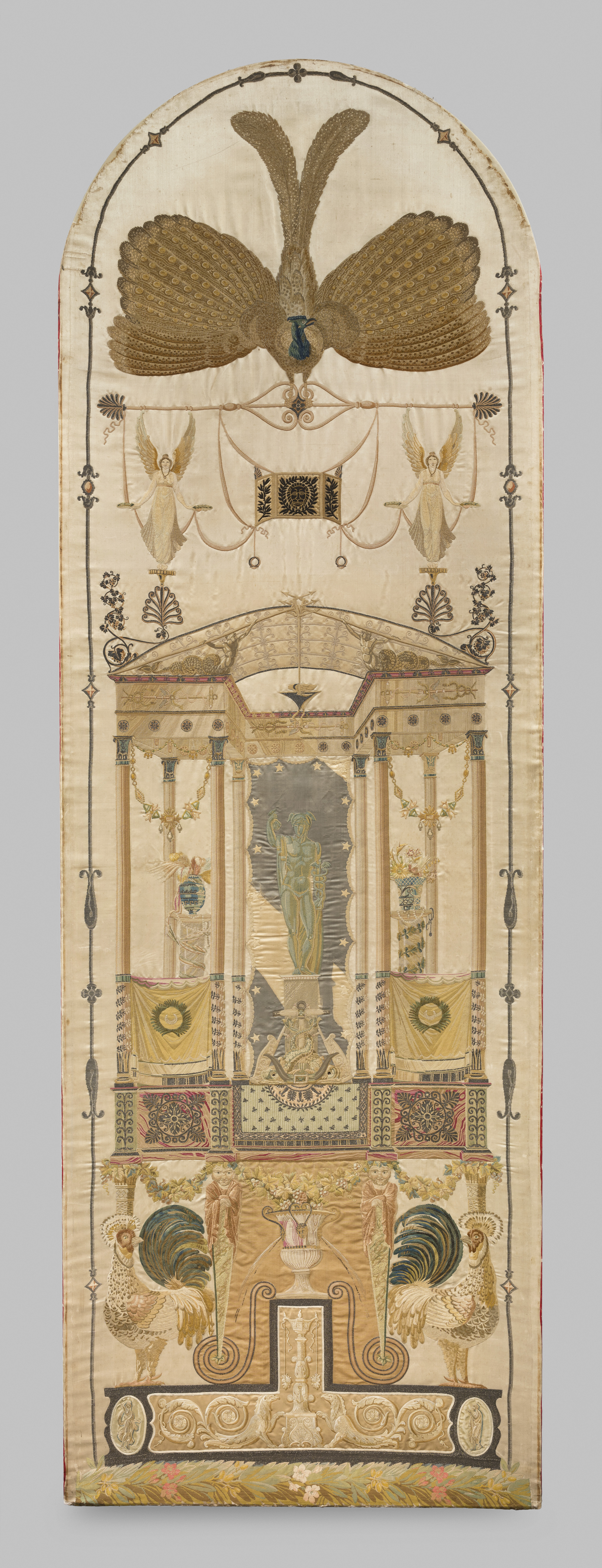 Dugourc worked for the prestigious silk firm of Camille Pernon in Lyon. The design for this panel featuring the god Mercury has been attributed to Dugourc based on a drawing found in Pernon’s archives. Three other panels from the set exist, including one depicting the god Mars that is also in this Museum’s collection.