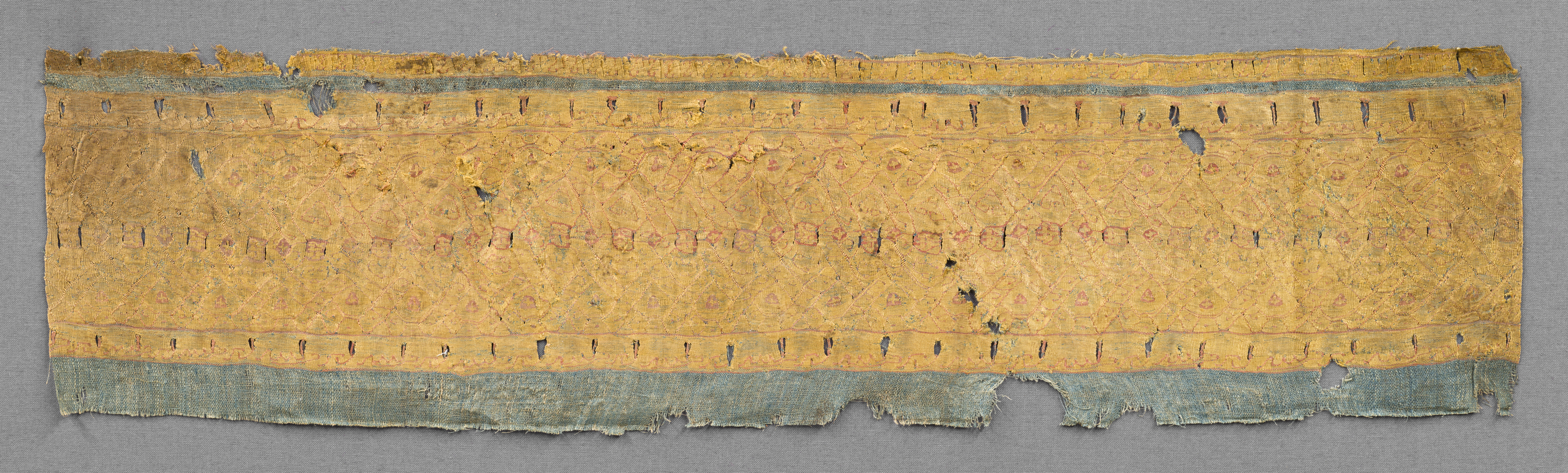 Fragment of a Tiraz-Style Textile with Design of Interlaced Bands and Inscriptions