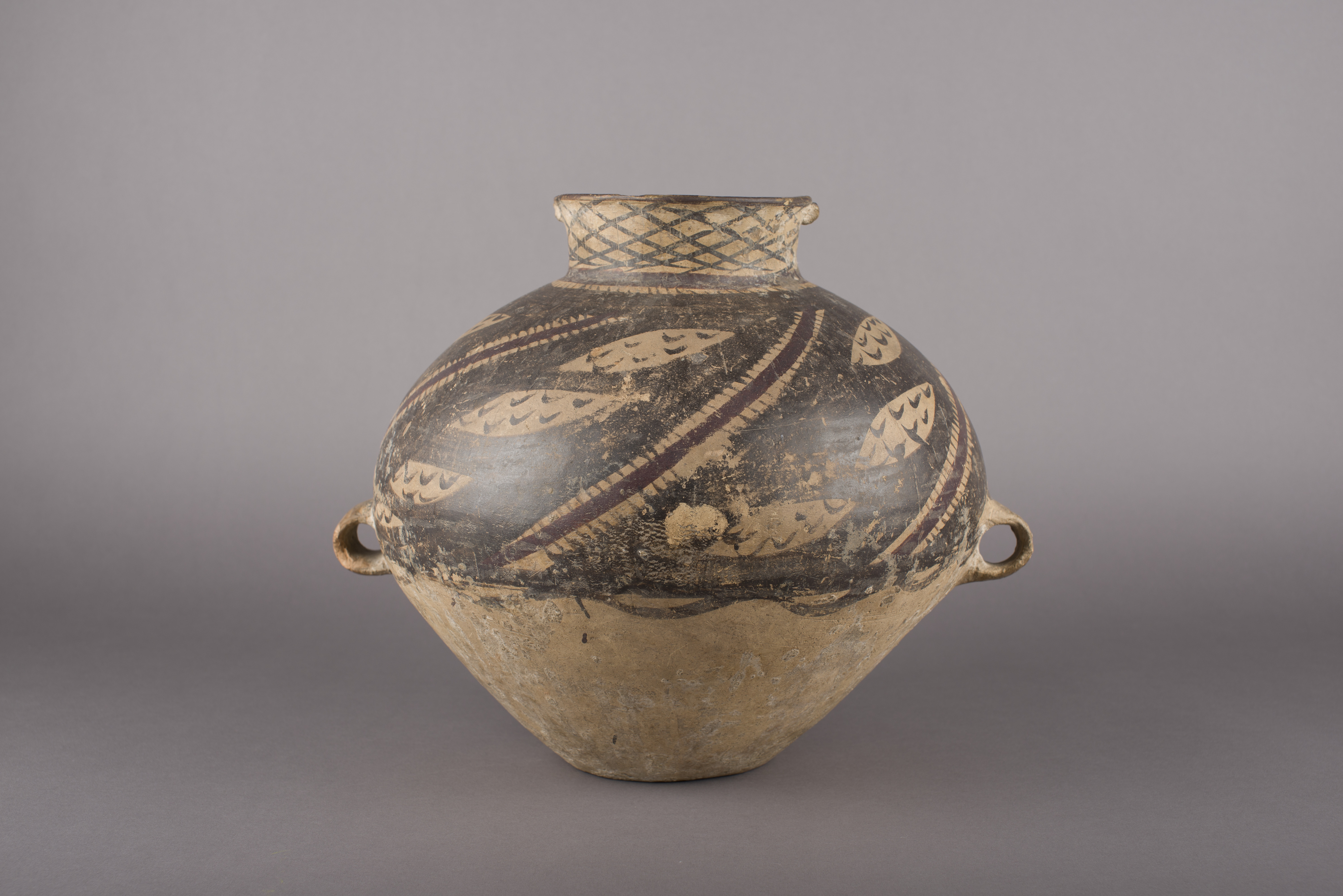 Jar (hu) with Two Loop Handles and Abstract Decoration