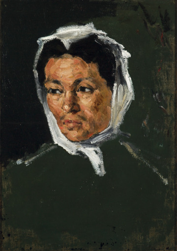 This painting by Paul Cézanne is double-sided. The primary image is a portrait of the artist's sister, Marie Cézanne, while the verso image is a portrait of a peasant woman (possibly a depiction of the artist's mother).