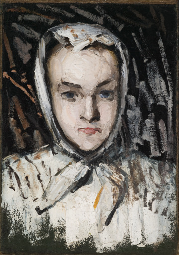 This portrait of the artist's sister, Marie, was largely painted with a palette knife, resulting in thick strokes of color and a subtle impasto (texture). This aggressive technique was strongly influenced by Gustave Courbet, a leading painter of the previous generation. Cézanne's reliance on family as subject is underscored by the later, more restrained portrait of his mother on the back of this picture.