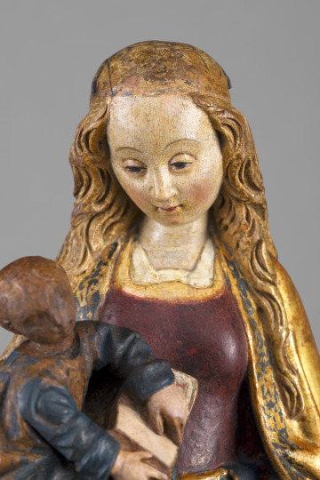 [1] The sculpture was in the Faust's collection by 1931 as indicated by a Museum list featuring works the Fausts agreed to lend to the Museum for exhibition beginning in December of that same year [typewritten list titled, "Old Masters and Decorative Arts from the Collection of Mr. and Mrs. Edward A. Faust on Indefinite Loan," SLAM document files, SLAM document files]. On this list the object is described as a "'Madonna and Child,' by a Flemish Master, ca.1520" [typewritten list of works, SLAM document files]. It was inherited by Mr. and Mrs. Faust's children, Leicester and Audrey.