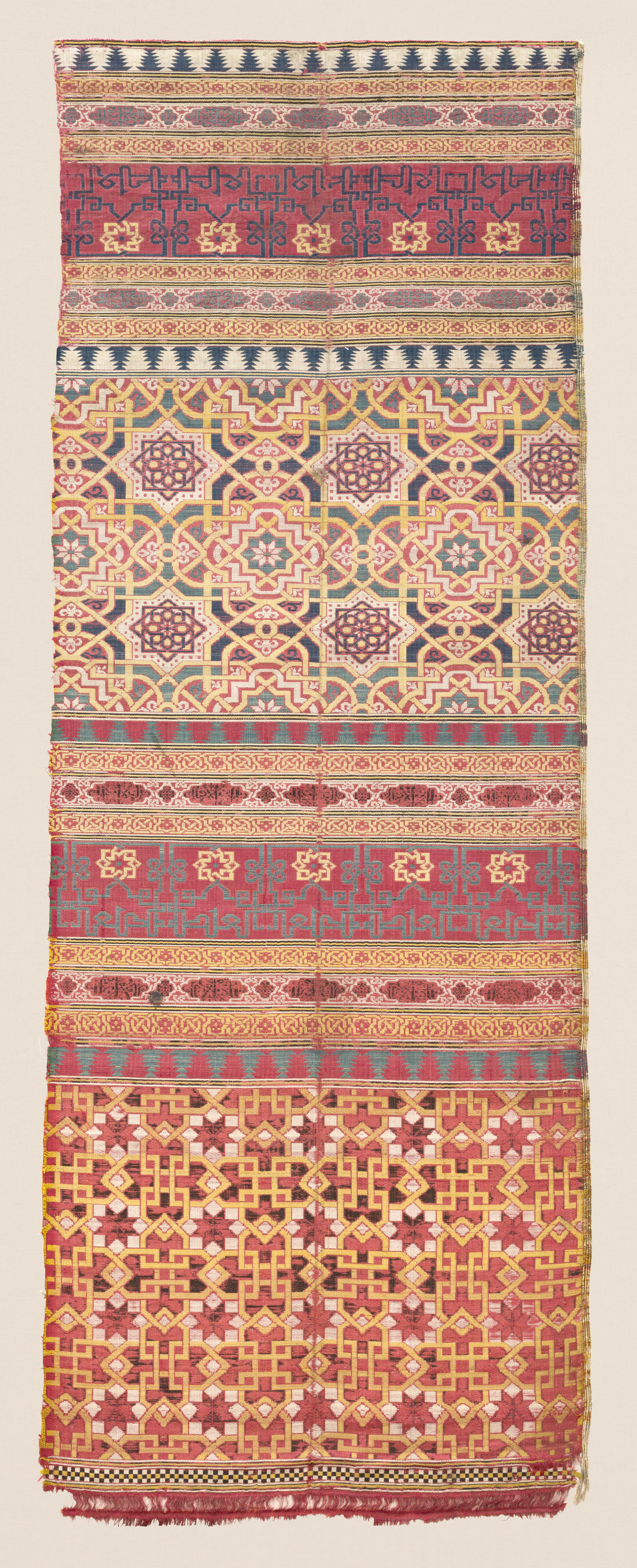 Curtain Panel with Design of Horizontal Bands of Geometric Patterns and Arabic Inscriptions in Kufic Script
