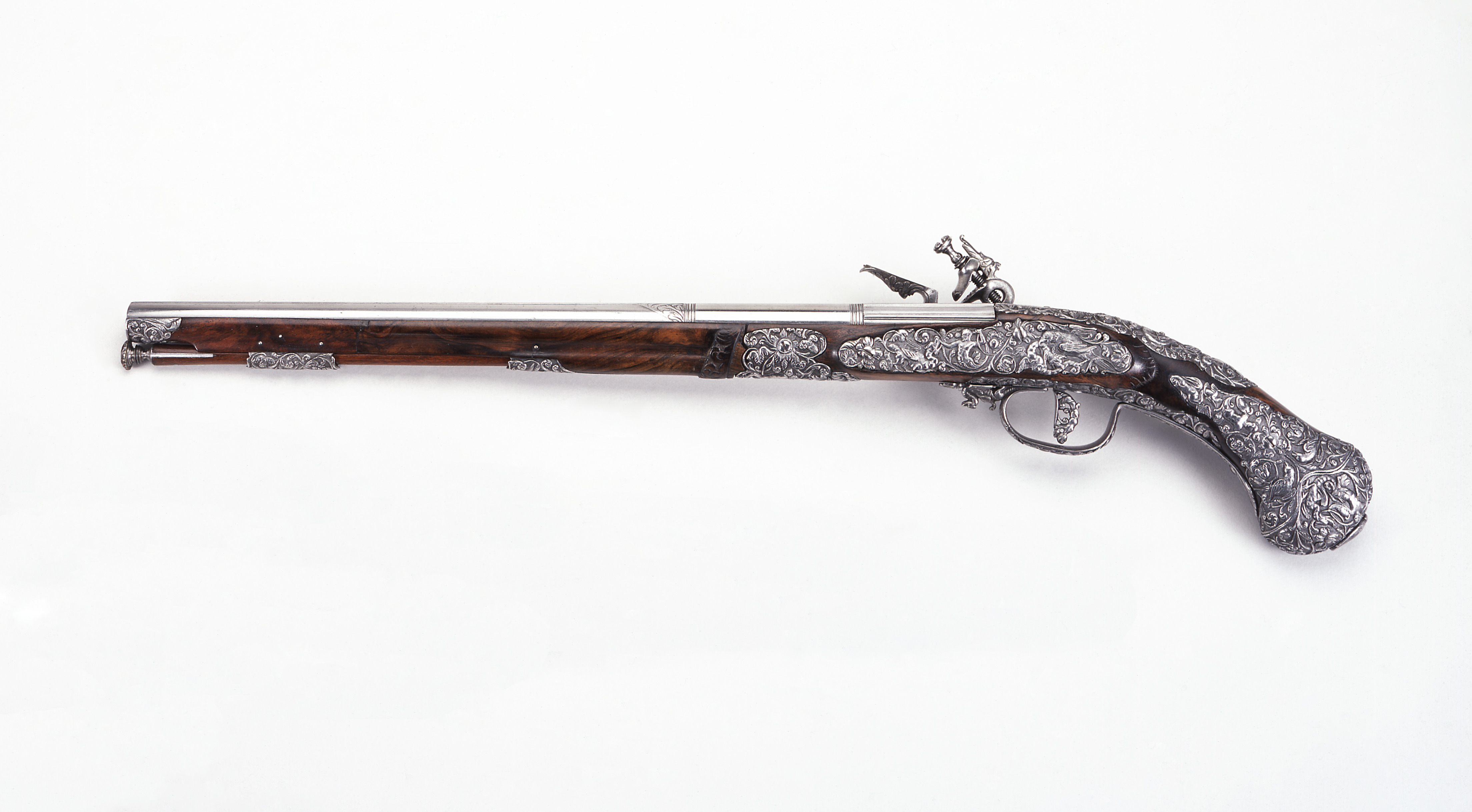 This flintlock pistol is one of a pair; the second flintlock pistol (77:1926) shares the same provenance.