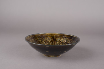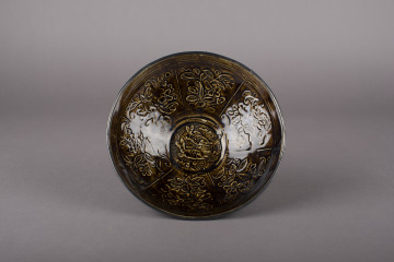 Bowl with Design of Two Fish and Waves Surrounded by Six Floral Panels