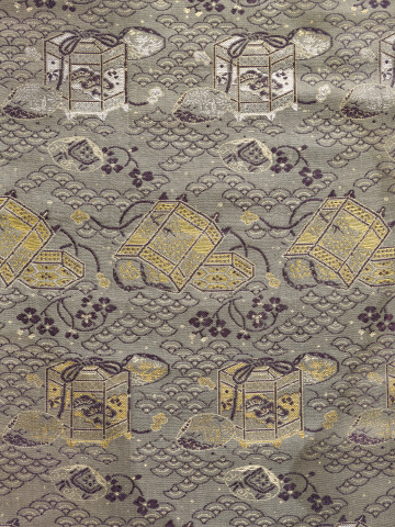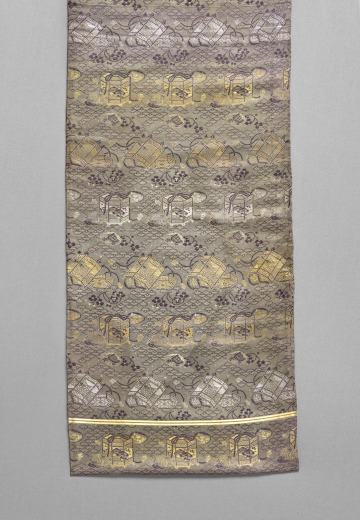 Woman’s One-piece Sash (maru-obi) with Design of Repeating Bands of Boxes for Painted Shells (kaioke)