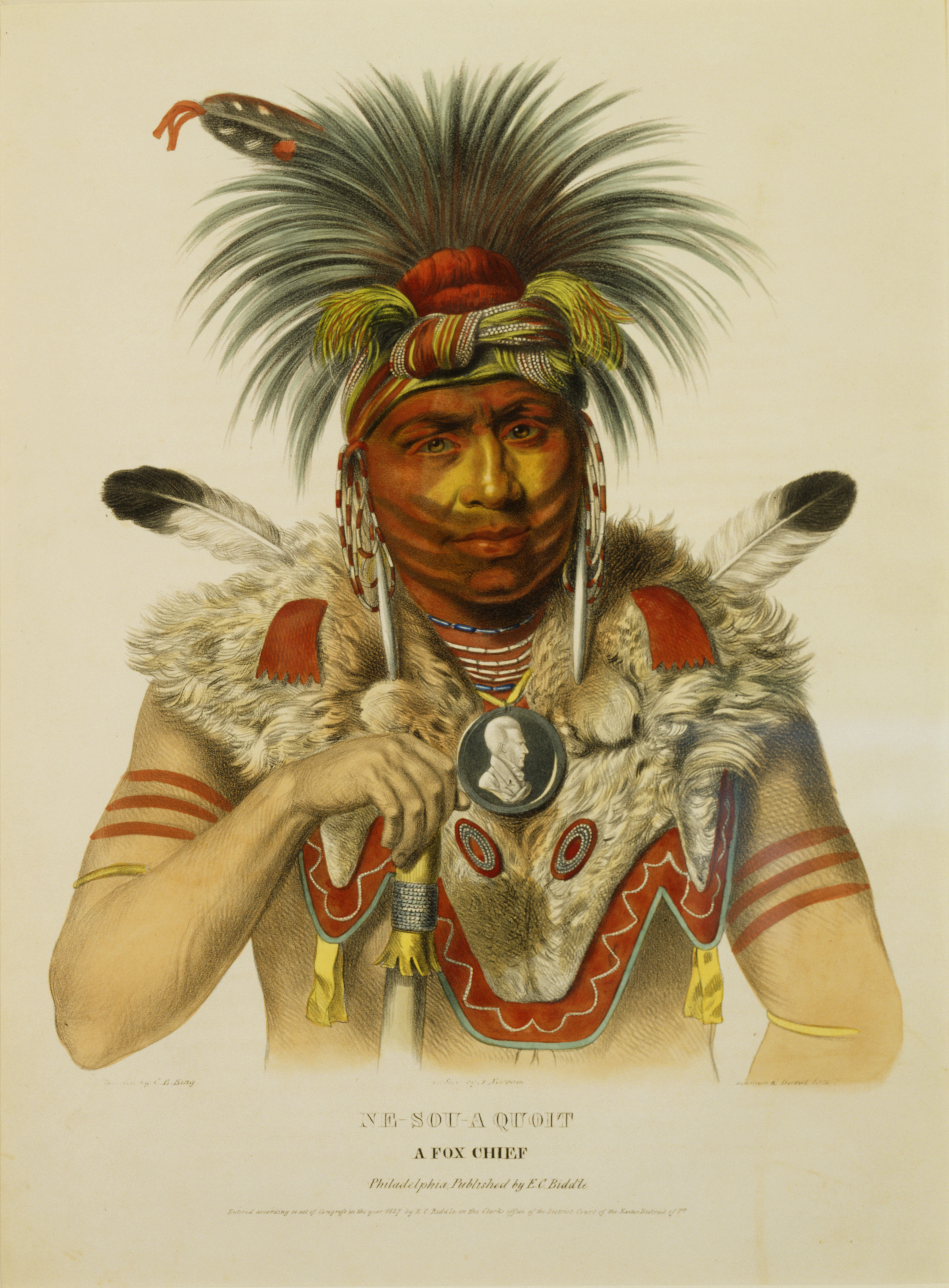 Ne – Sou – A Quoit, A Fox Chief, from “History of the Indian Tribes of North America,” by Thomas McKenney and James Hall