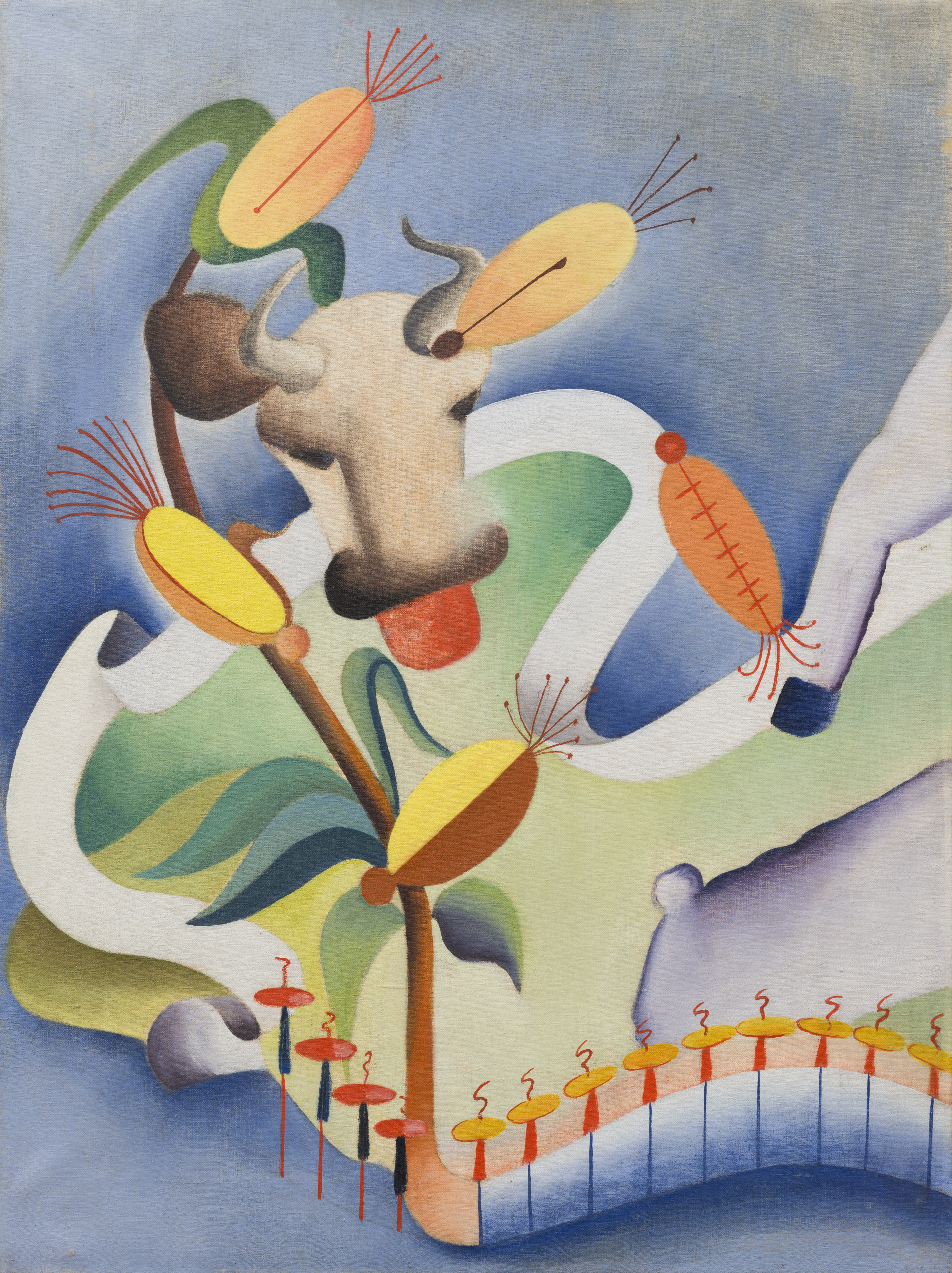 “Little boy blue, / Come blow your horn, / The sheep’s in the meadow, / The cow’s in the corn.” Selma Day combined elements of this nursery rhyme in a mural design intended for the Harlem Hospital. In late 1937, she covered the walls of its children’s ward with scenes from Mother Goose rhymes. Day was one of 36 painters who decorated the new hospital wing with murals, the first major commission awarded by the Federal Art Project to African American artists. A native New Yorker, Day worked as a commercial artist in advertising, followed by careers in marketing and interior design.