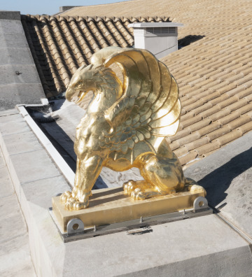 Proctor’s original sculptures were removed in 1993 to protect them from the elements. Two bronze-cast replicas created by Modern Art Foundry continue to guard the Museum, while the 1904 griffins remain safely in storage.