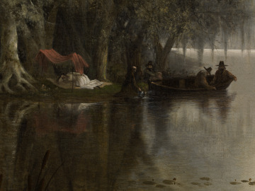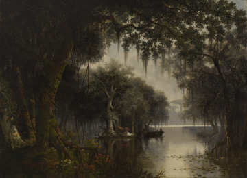 While serving in the Navy during the Civil War, artist Joseph Meeker sketched the swamps and bayous along the lower Mississippi River. These sketches became inspiration for later paintings, like this one, created in St. Louis after the war.
