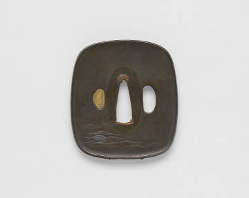Sword Guard (tsuba) with Design of Autumn Grasses and Moon Reflected in Water