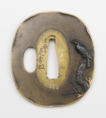 Sword Guard (tsuba) with Design of Raven Perched on a Tree Branch